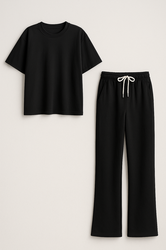 Leona | Damen Twin Set Polyester mit V-Ausschnitt und Weiten Hosen