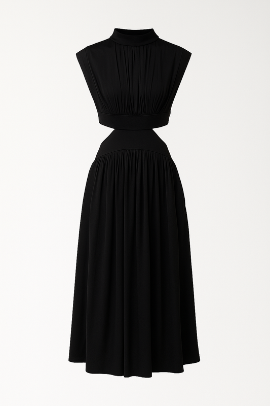 Anna | Elegantes Damen Midikleid mit Cut-Outs und hohem Kragen