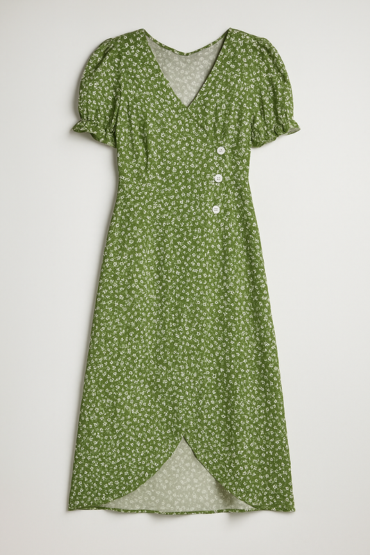 Marie | Geblümtes Midikleid mit V-Ausschnitt und seitlichen Knöpfen