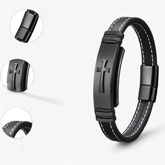 Rafa | Robustes schwarzes goldenes Kreuzarmband