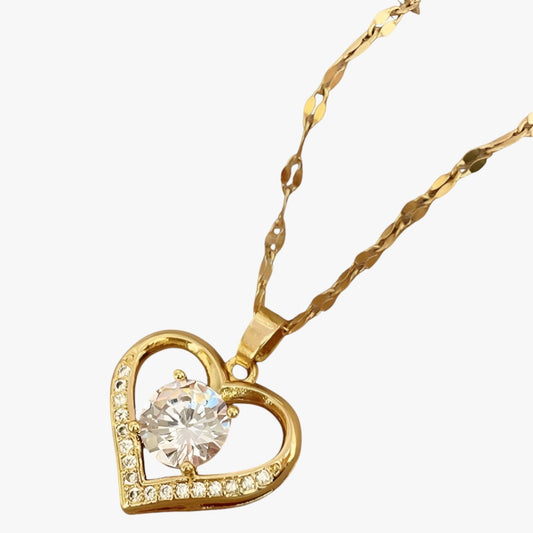 Skylar | Damenherz-Kette mit Edelsteinen, elegantes und komfortables goldenes Design