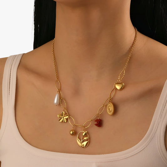 Bailey | Elegante Halskette mit Herz- und Tulpenanhängern