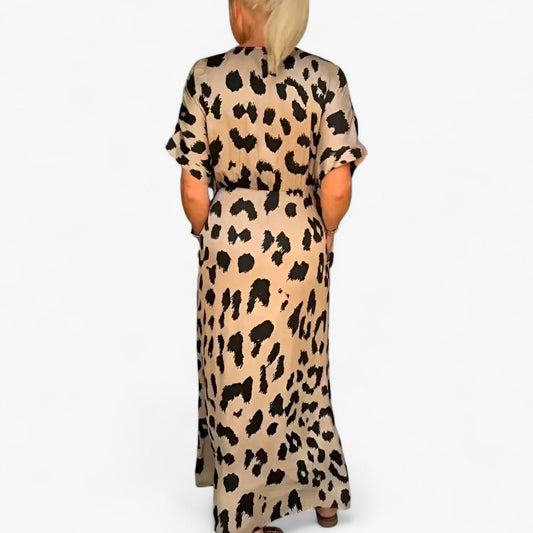 Carmen | Langes Damenkleid mit Leopardenmuster