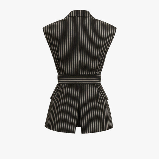 Claire | Langer gestreifter Gilet mit Taillengürtel aus Baumwollmischung
