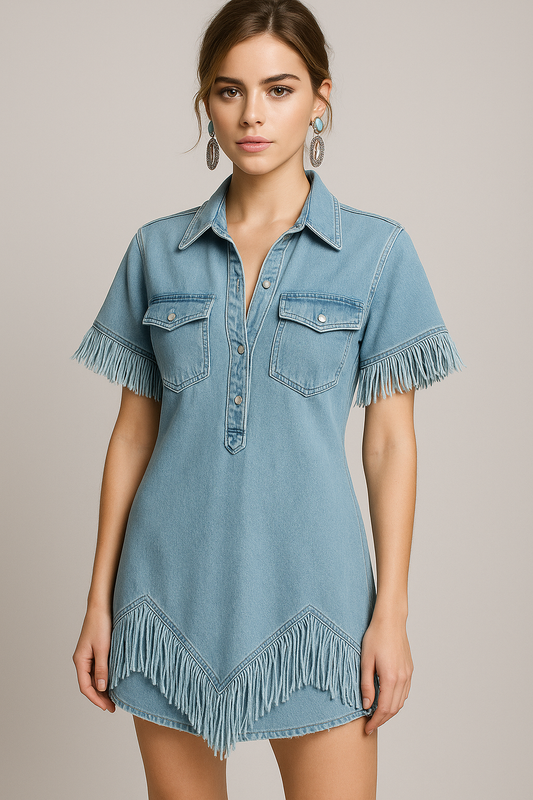 Dakota | Denim-Hemdkleid mit Fransen und Brusttaschen