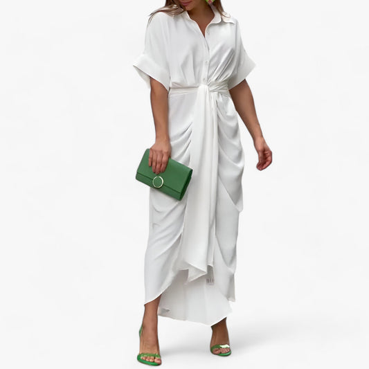 Elegantes Midikleid - Raffinierter Stil mit Umlegekragen & Bindegürtel
