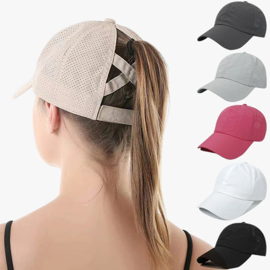 Aliyah | Sommer Sporthut mit Pferdeschwanzöffnung und atmungsaktivem Netz