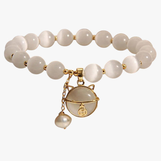 Alora | Opalperlenarmband mit Glückskatzen-Anhänger, elegantes, verstellbares Geschenk