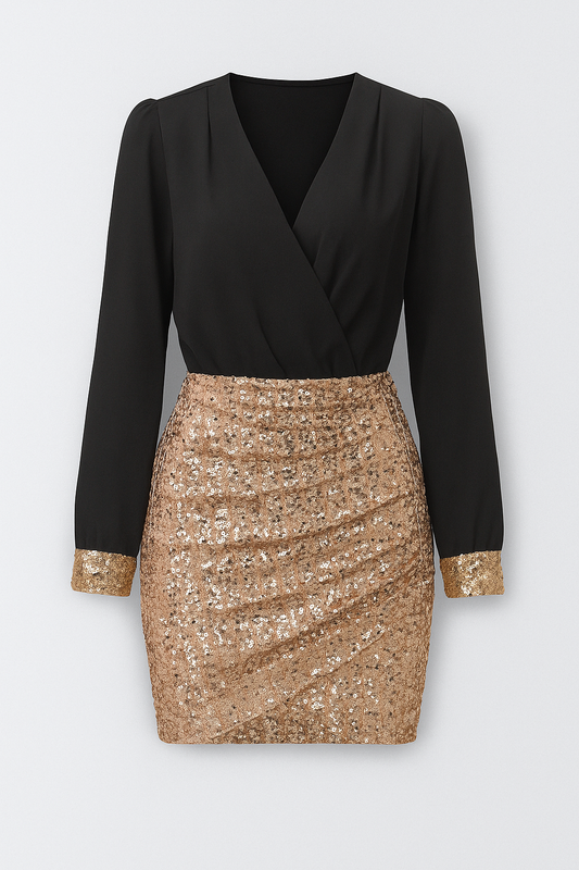 Hollis | Wickelbluse & Pailletten-Minirock Set