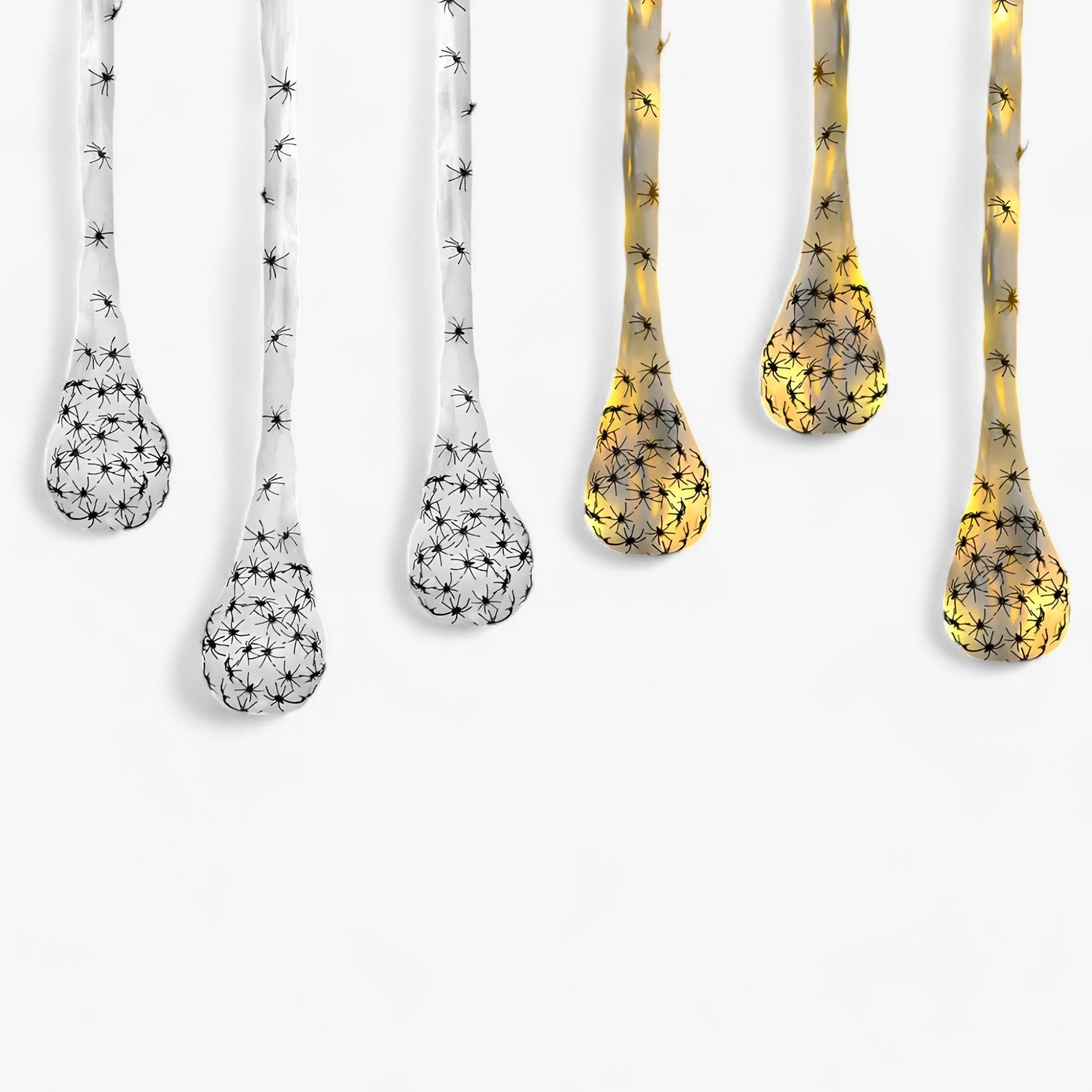 Stellen Sie sich die Reaktion Ihrer Besucher vor, wenn sie diese hängenden Eier-Säcke sehen, die beleuchtet sind, um den erschreckenden Effekt zu verstärken. In einer dunklen Ecke angebracht, strahlen diese Säcke sanft und lassen eine Invasion angsteinflößender Spinnen erahnen.