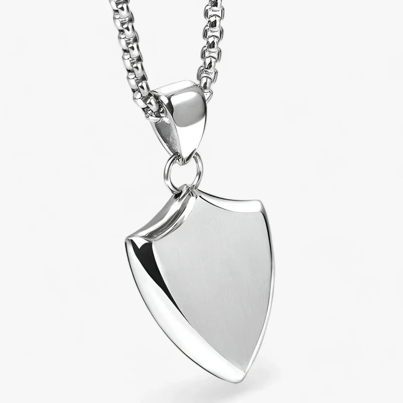 Entdecken Sie die AEGIS-Halskette mit glattem Schildanhänger, ein atemberaubendes Schmuckstück, das für den modernen Mann entworfen wurde. Hergestellt aus hochwertigem Edelstahl, besticht diese Halskette durch ein elegantes Schilddesign, das jeder Garderobe eine persönliche Note verleiht. Perfekt für den täglichen Gebrauch oder besondere Anlässe, verbindet sie Haltbarkeit mit Stil.