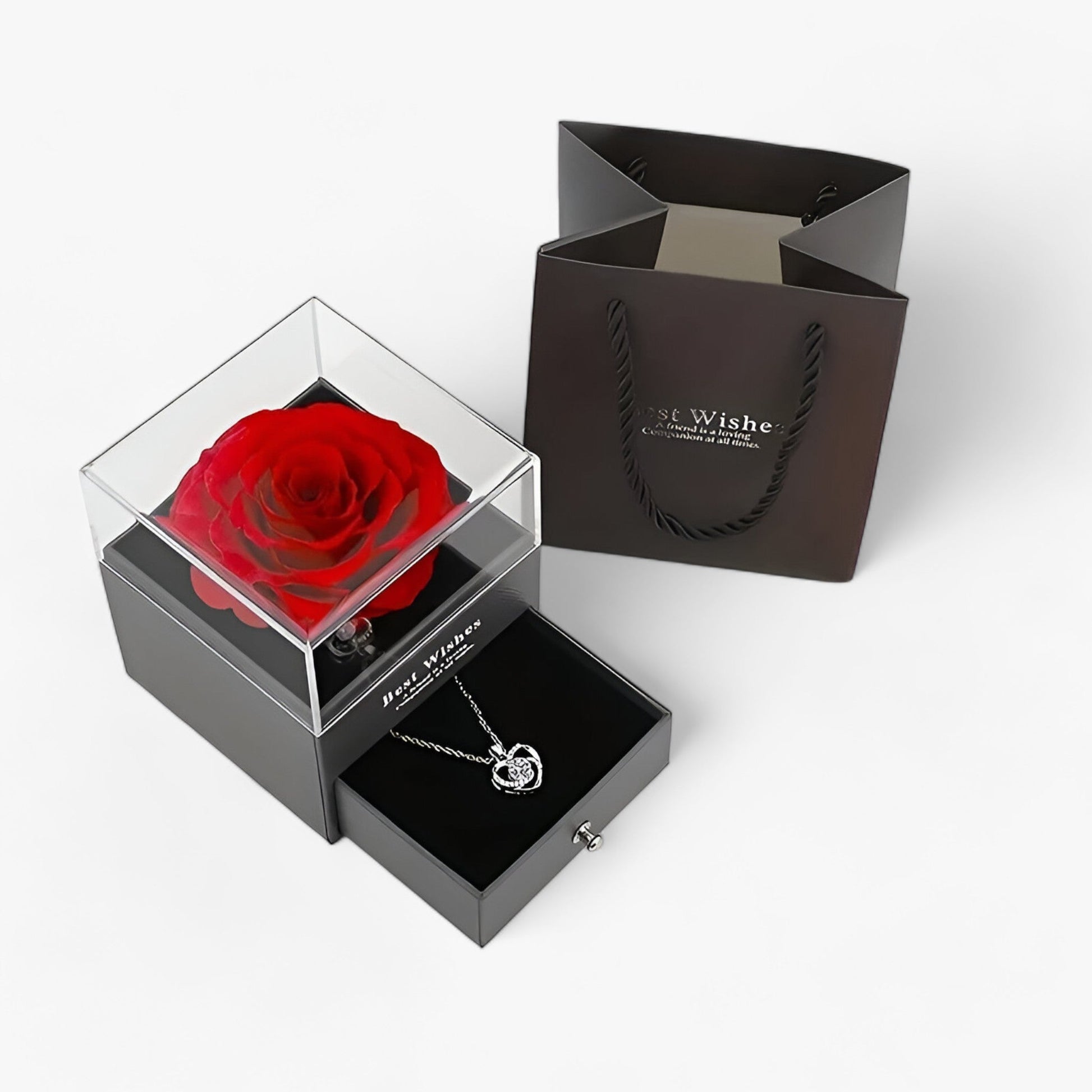 Elegante Herz-Zirkonia-Halskette mit luxuriöser Rosen-Geschenkbox