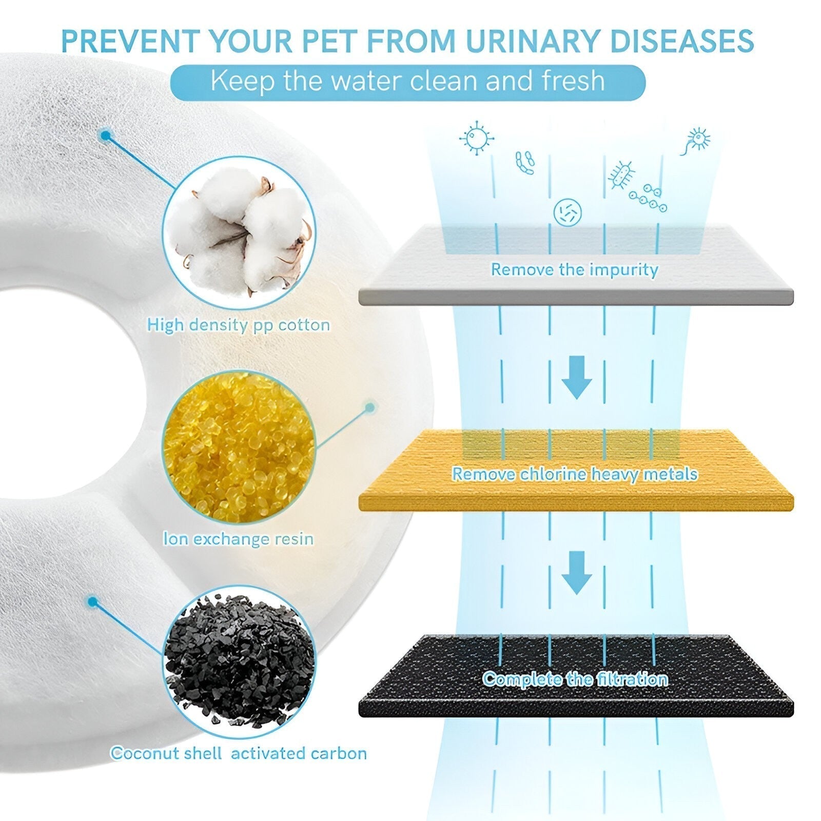 Der Brunnen lässt sich leicht zerlegen und reinigen, wodurch sichergestellt wird, dass das Wasser immer frisch bleibt. Die austauschbaren Filter garantieren minimalen Aufwand für maximale Effizienz.