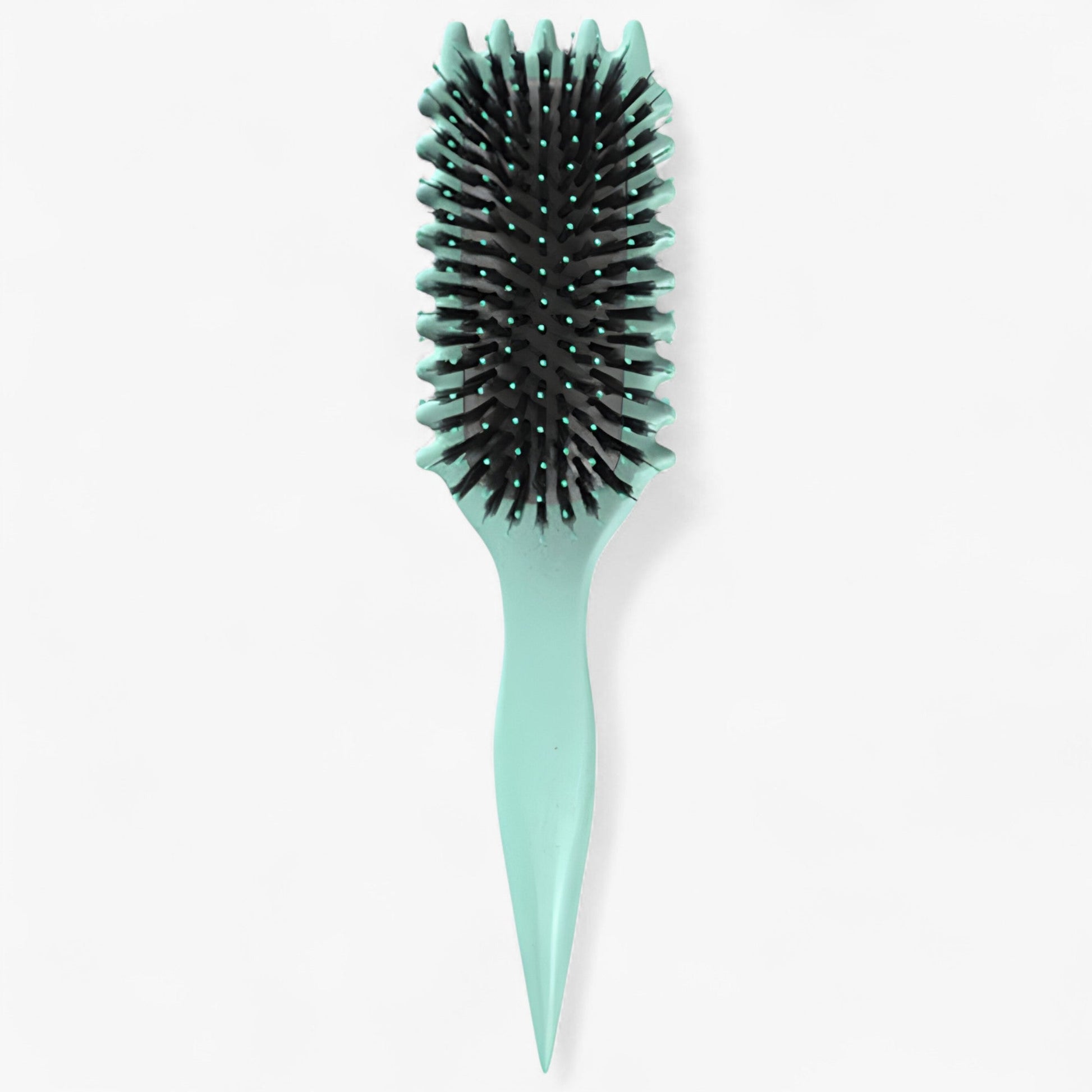Der ergonomische Griff und die strategisch platzierten Borsten definieren, formen und glätten Locken ganz unkompliziert.