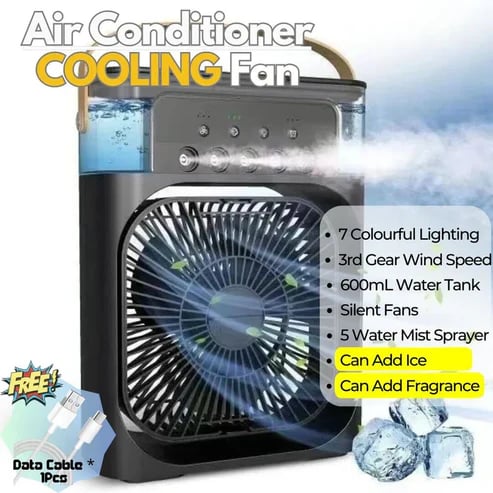 - ️Features: Luftkühler-Ventilator, 7 farbige Nachtlichter, automatische Zeitabschaltung, mit Handgriff, USB-Adapter, Wasserzufuhr oben, Sprühbefeuchtung, Schlafmodus, 240° breiter Luftwinkel.