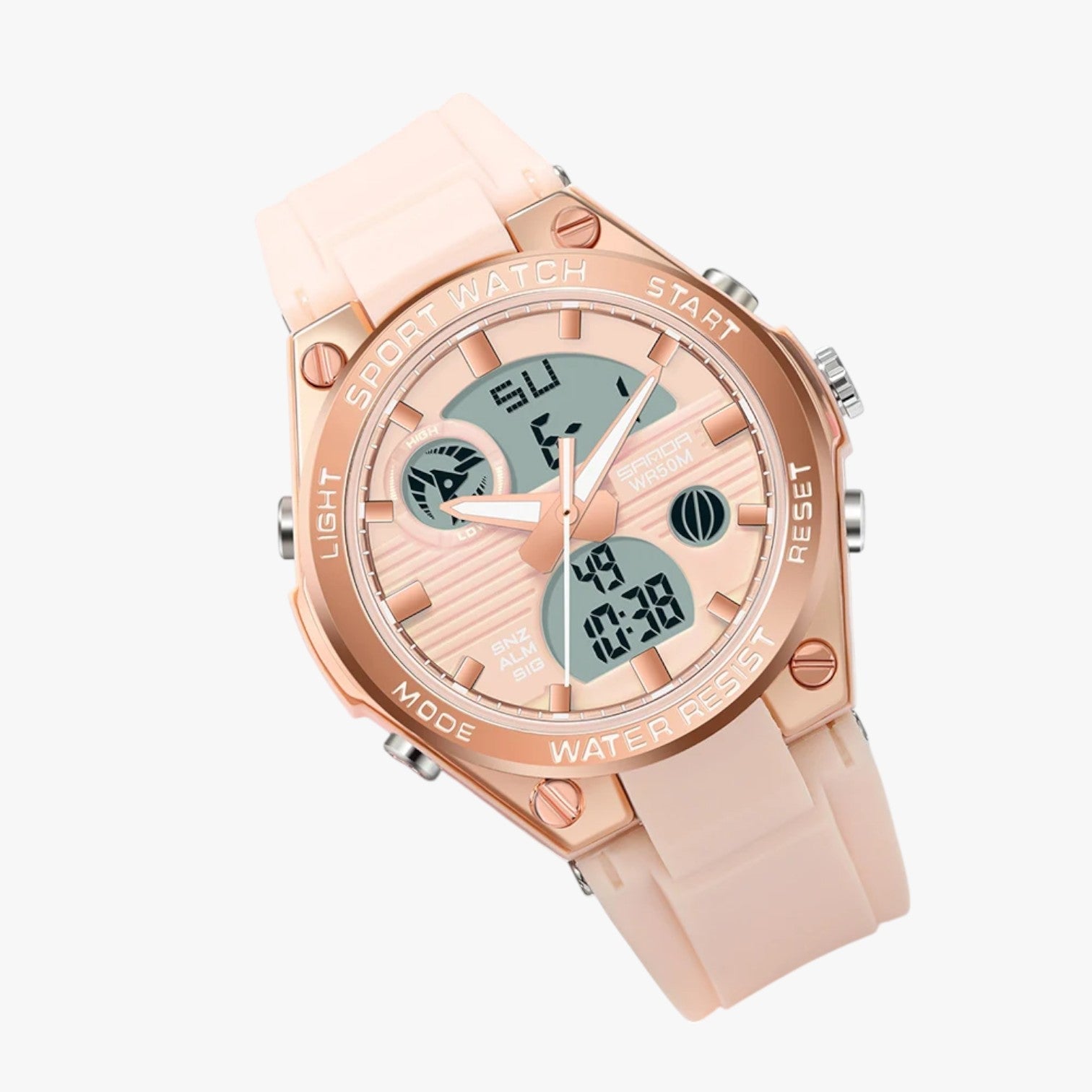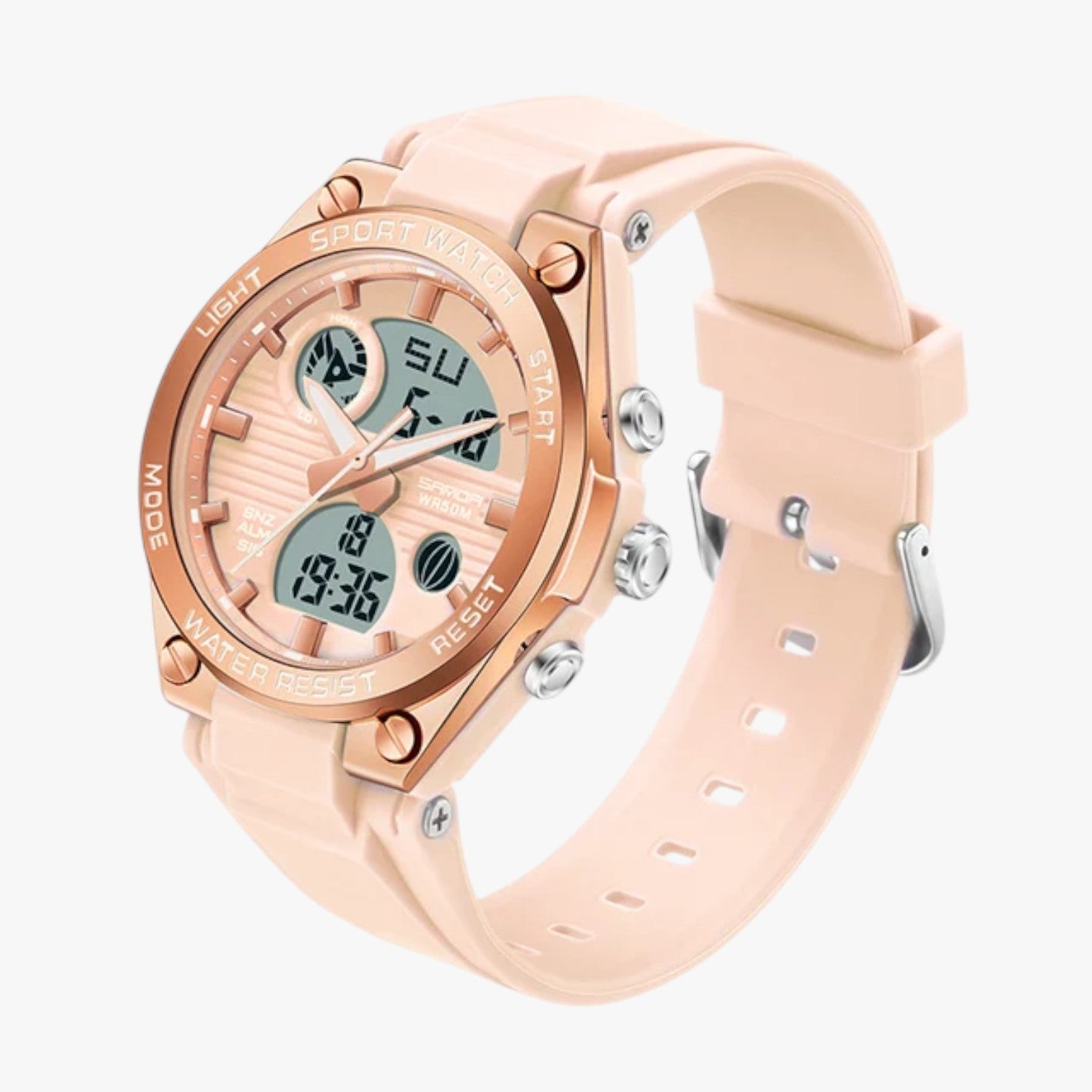 Callie ist die Uhr, die sportliche Eleganz mit Wasserbeständigkeit vereint. Perfekt für jeden Anlass, ohne auf Komfort zu verzichten.