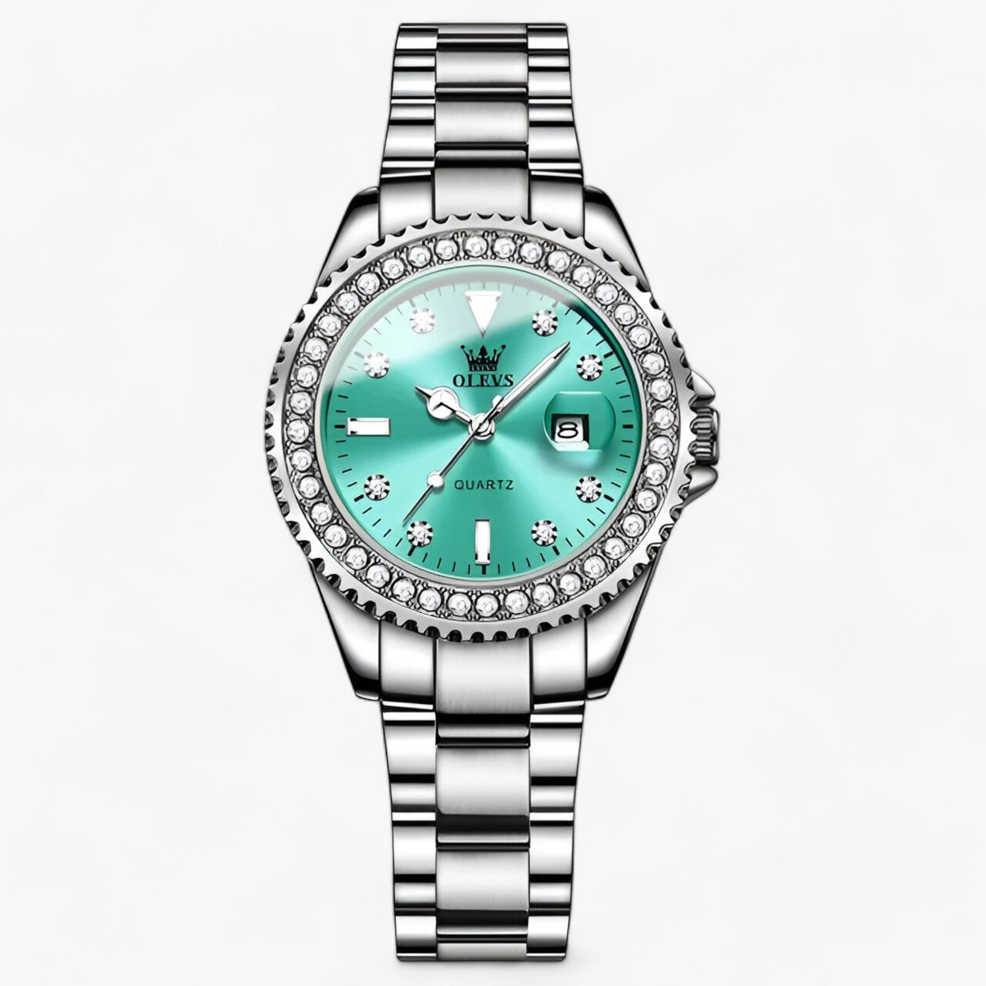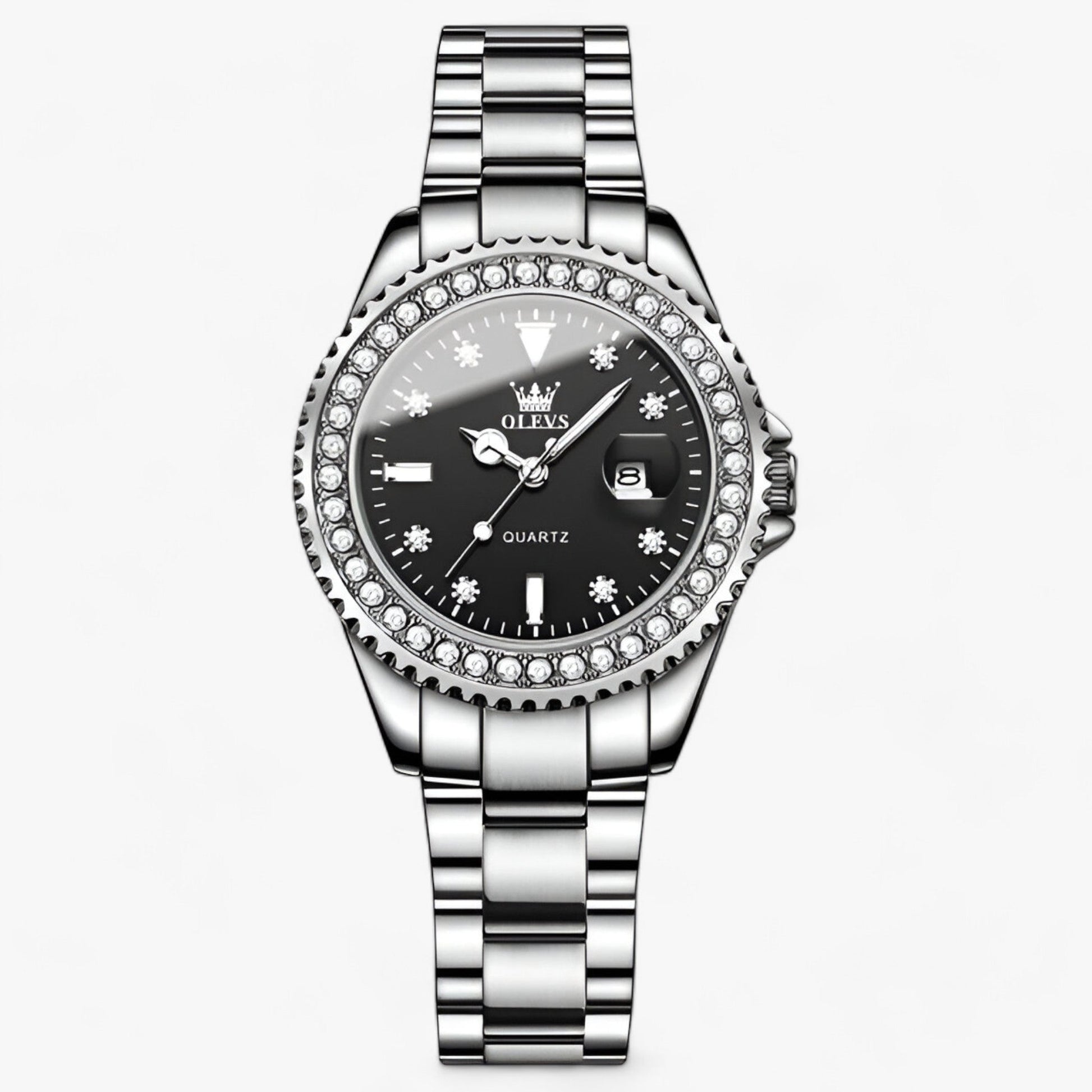 - Elegantes Design: Mit einem diamantbesetzten Zifferblatt, das Ihrem Look einen Hauch von Luxus verleiht.