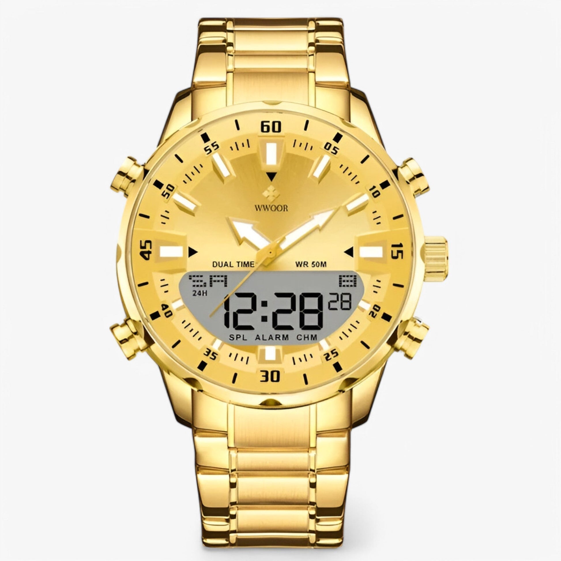 Das massive Gehäuse aus gebürstetem Edelstahl bietet nicht nur Schutz, sondern auch eine markante Ästhetik. Es widersteht Stößen, Kratzern und jeder Art von Belastung – ein Begleiter, auf den du dich immer verlassen kannst.