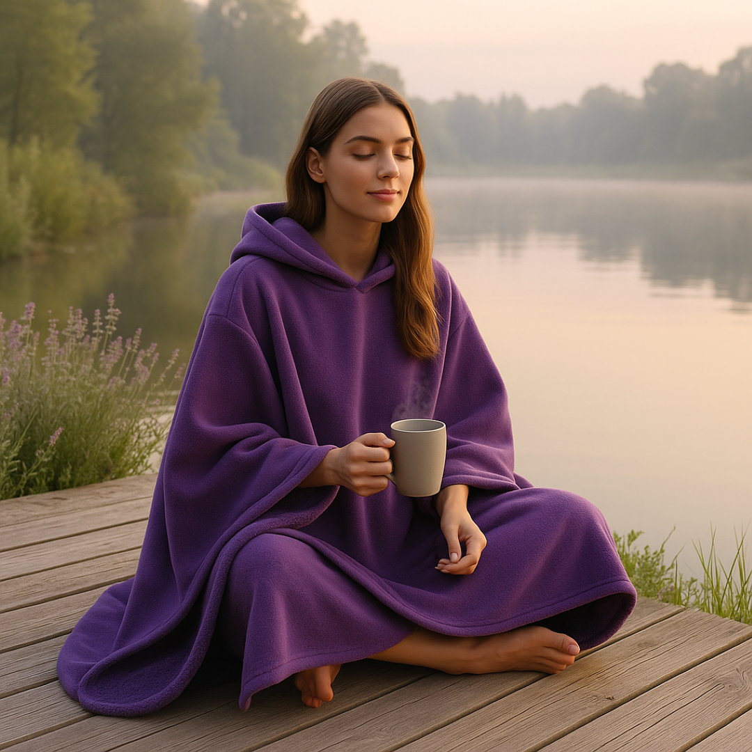 Hüll dich in Eden und verwandle jeden Moment zu Hause in eine warme Umarmung. Weich, geräumig und mit Kapuze: Es ist die Decke, die dich von Kopf bis Fuß verwöhnt.