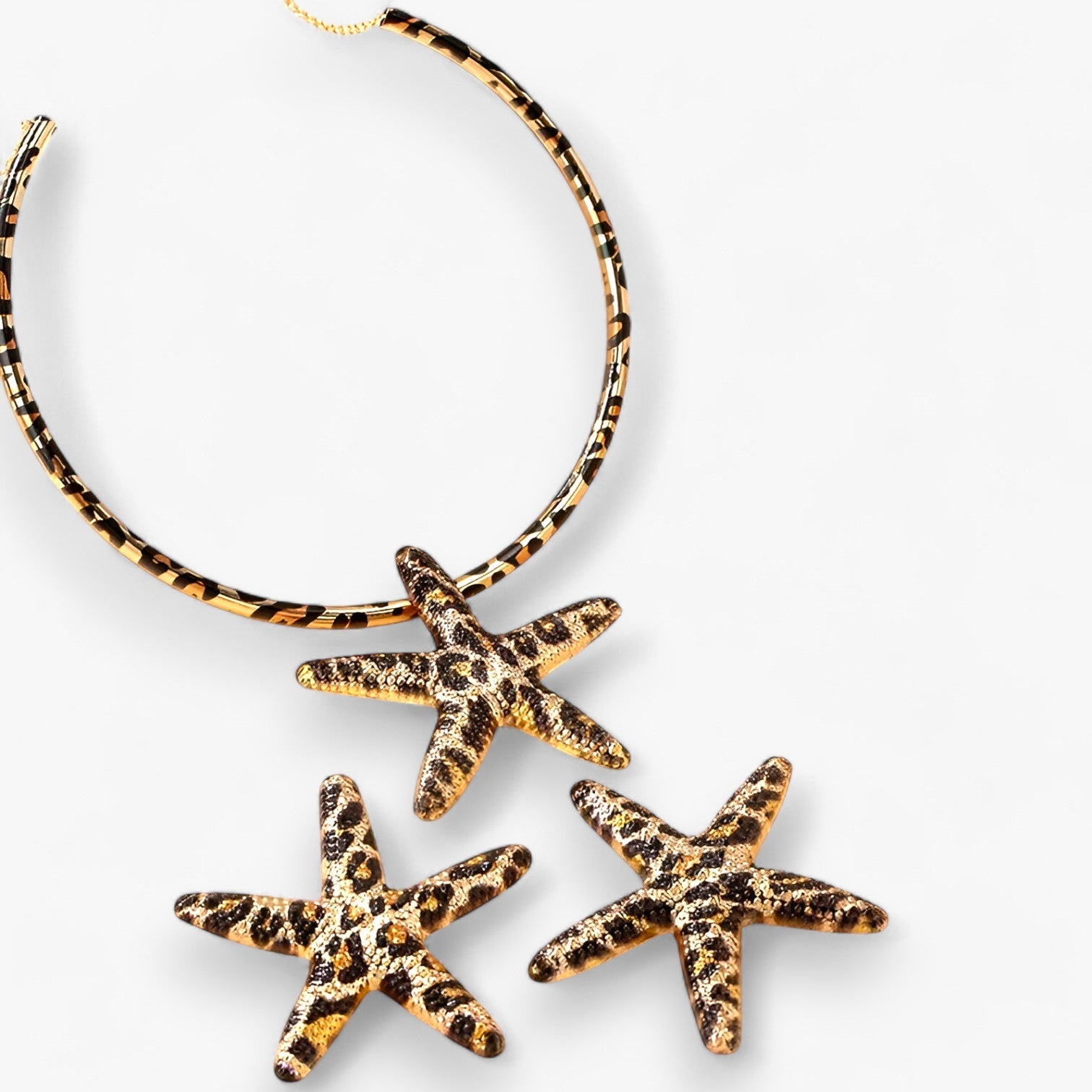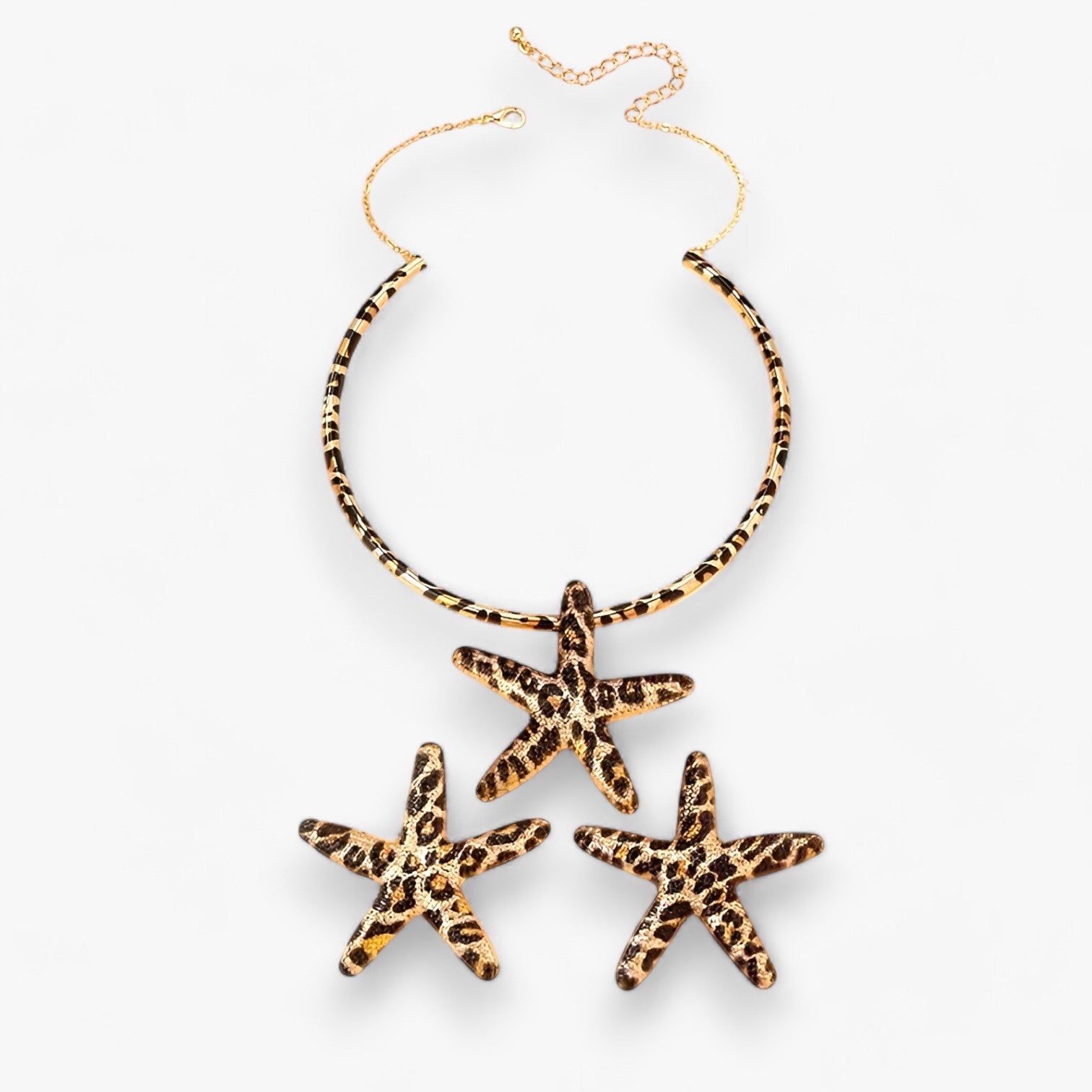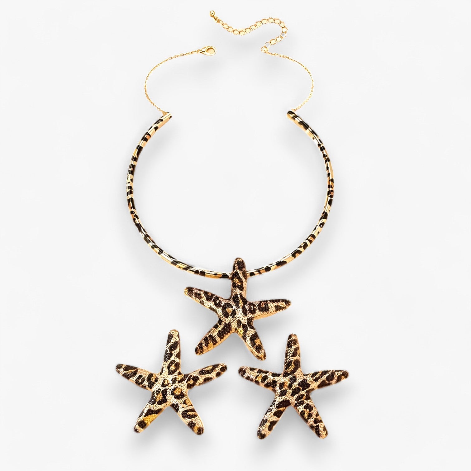 Das Leopardenmuster verleiht dem Set eine moderne Note, während der Seesternanhänger und die Ohrringe mit Eleganz einen markanten Look schaffen.