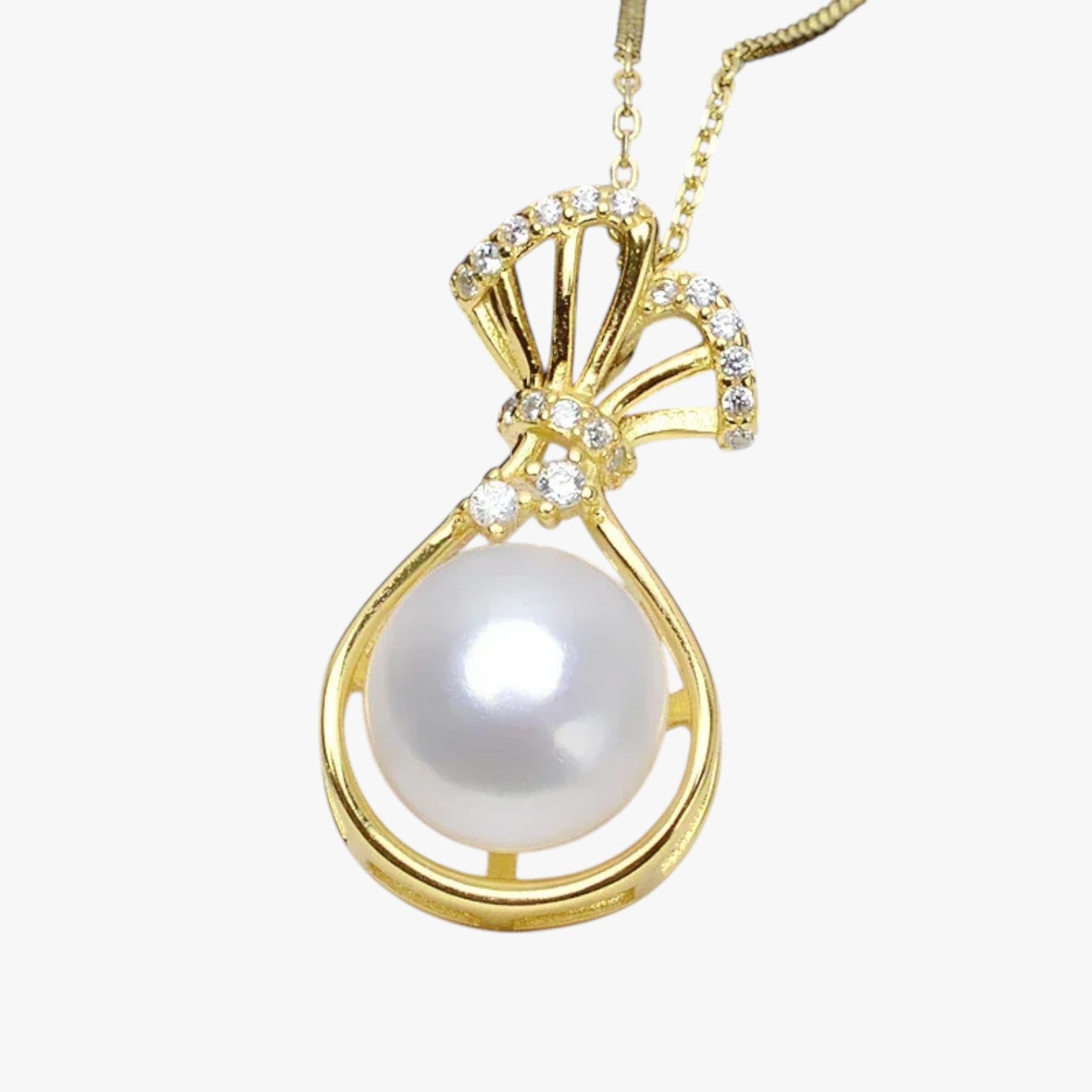 Der Anhänger in Form einer Tasche und die imitierte Perle ziehen sofort alle Blicke auf sich.