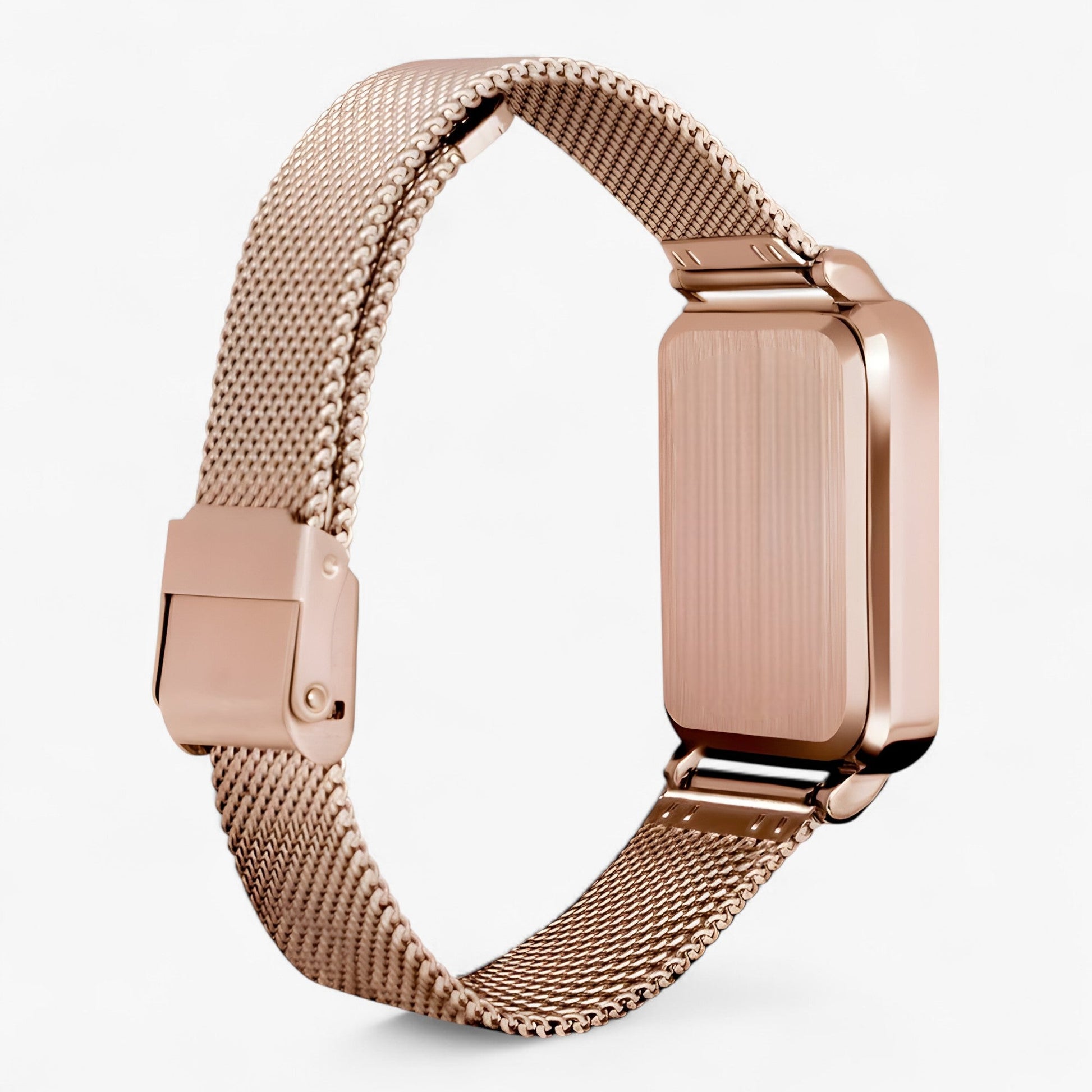 Das leichte Mesh-Armband sorgt für Komfort und Langlebigkeit zugleich und passt sich mühelos Ihrem Handgelenk an – für einen sicheren und luxuriösen Sitz, den Sie kaum bemerken werden, aber alle anderen schon.