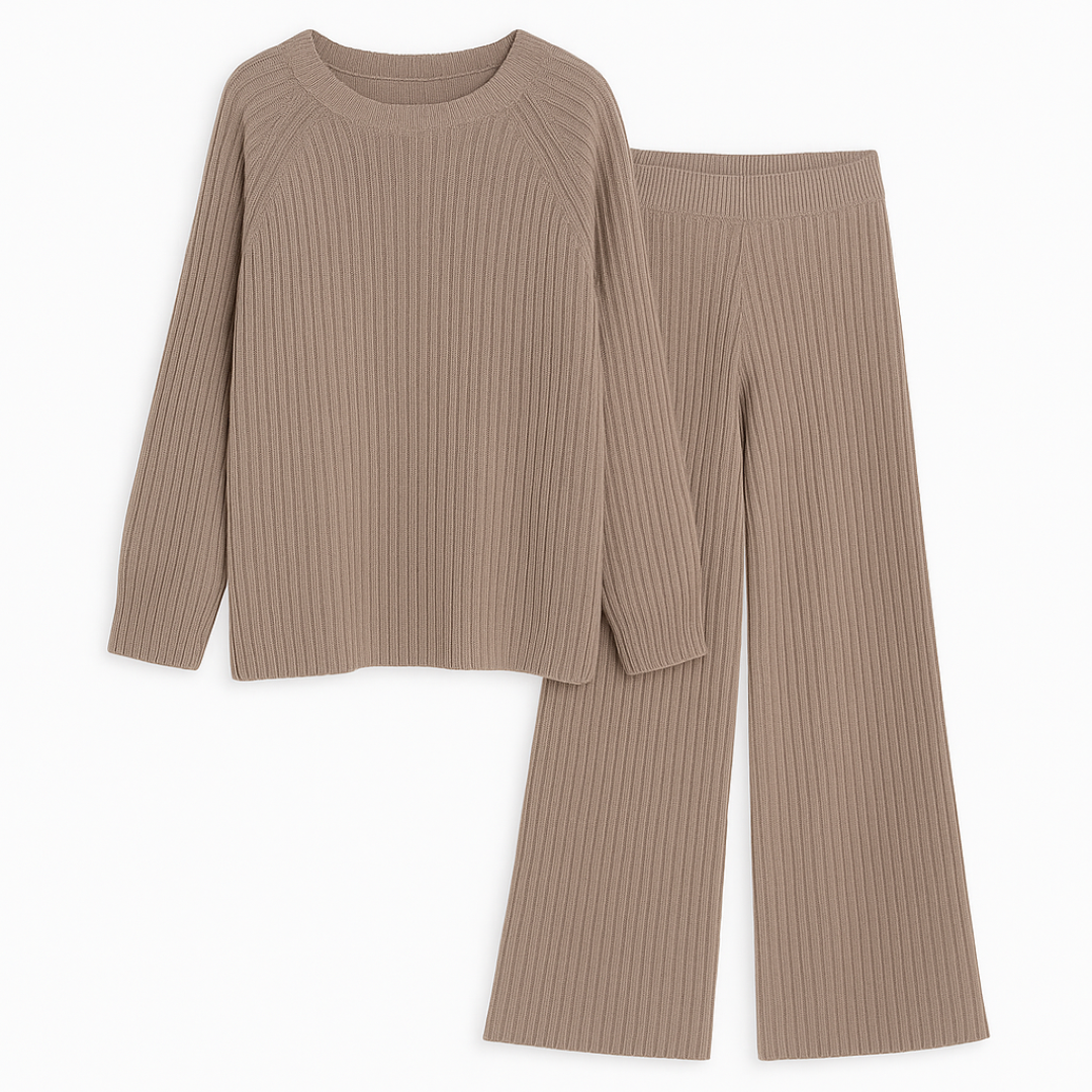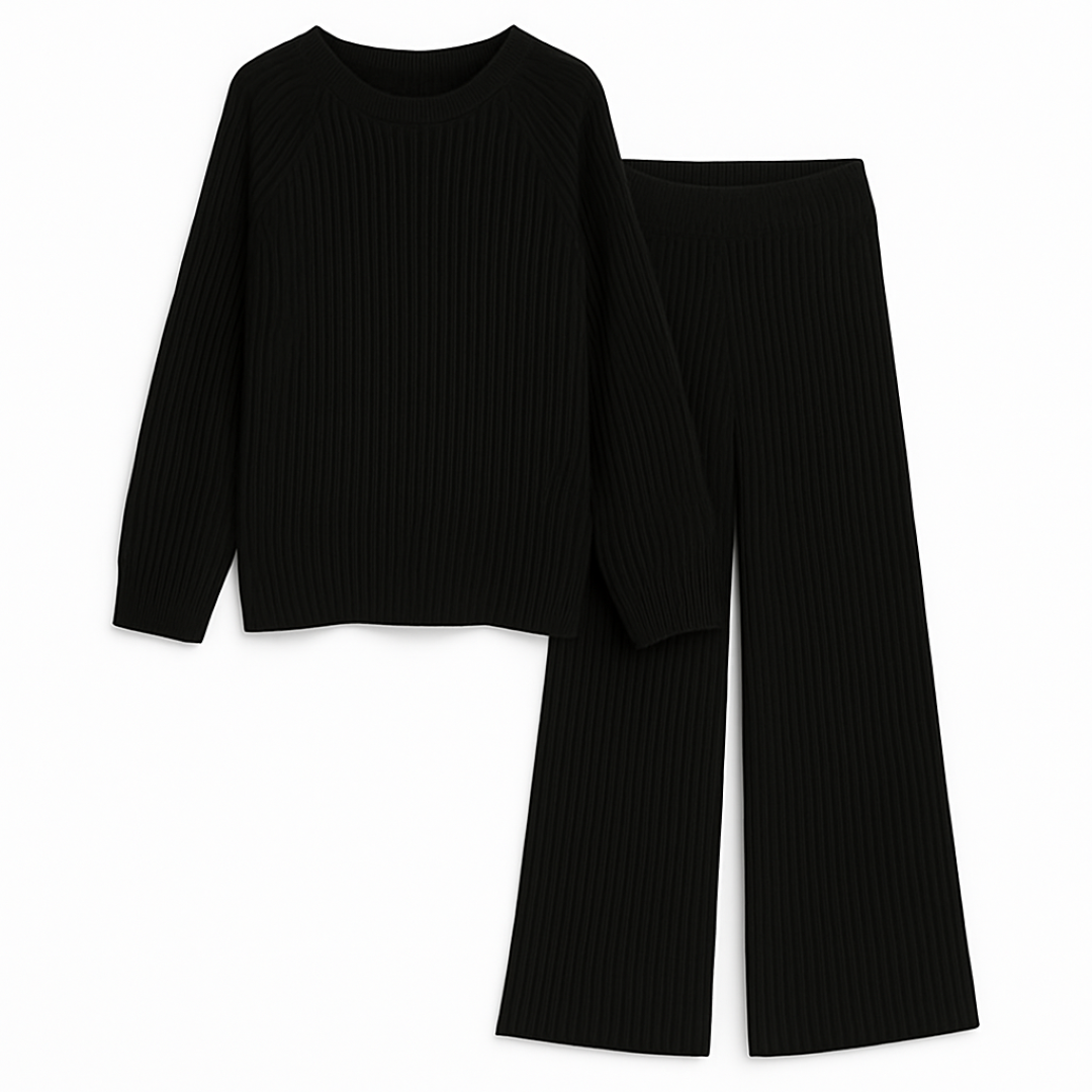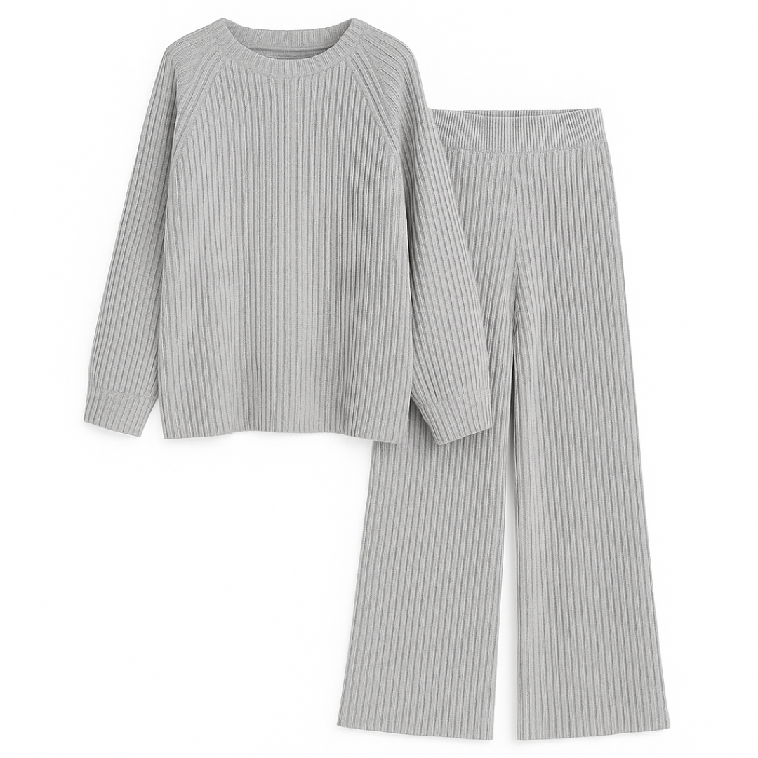 Das weiche, gerippte Material fühlt sich warm und angenehm auf der Haut an und verleiht dem Set gleichzeitig Struktur und visuelle Tiefe.