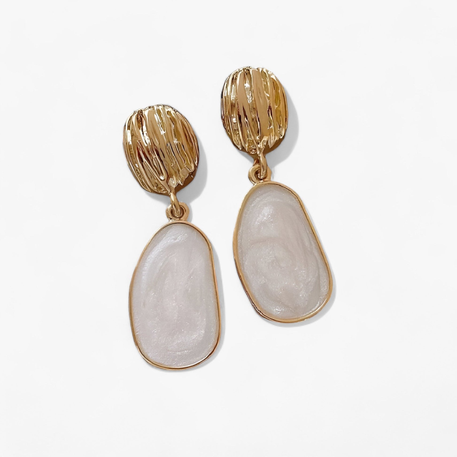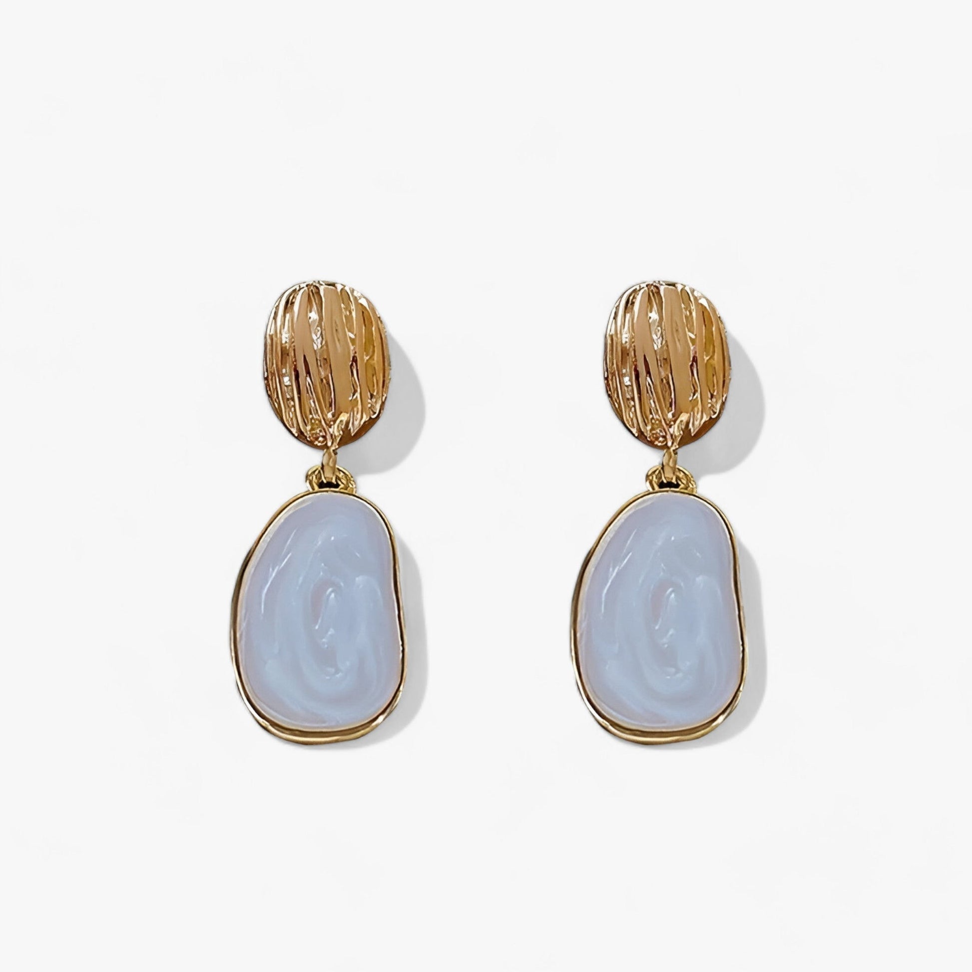 Maak kennis met de ELLA Witte Emaille Ovale Hangende Oorbellen, eine wunderschöne Mischung aus Vintage-Charme und moderner Raffinesse. Diese Statement-Ohrringe haben ein einzigartiges Design mit weißen Emaille-Ovalen in ungleichmäßigem Metall, was für einen auffälligen und unregelmäßigen geometrischen Look sorgt. Perfekt für Frauen, die gerne ein kühnes Mode-Statement setzen, sind diese Ohrringe ideal für jede Gelegenheit, von informellen Ausflügen bis zu eleganten Veranstaltungen. Die Kombination aus Emaille und Metall gewährleistet Langlebigkeit und bewahrt eine schicke, polierte Oberfläche. Ob als durchdachtes Geschenk oder stilvolle Ergänzung Ihrer eigenen Sammlung, die ELLA Ohrringe sind ein Muss für jeden Schmuckliebhaber.
