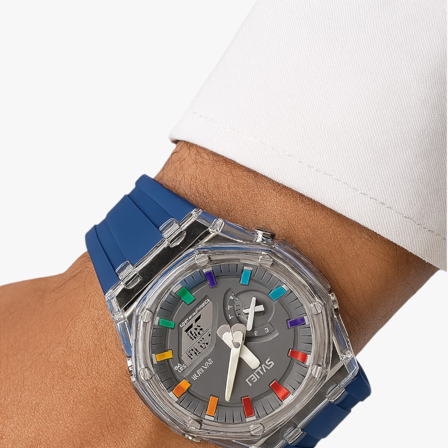 Mit Fabian verfolgst du die Zeit nicht – du kontrollierst sie. Das transparente Design macht ihn modern und einzigartig, während die fortschrittlichen digitalen Funktionen den ganzen Tag unauffällig für dich arbeiten.