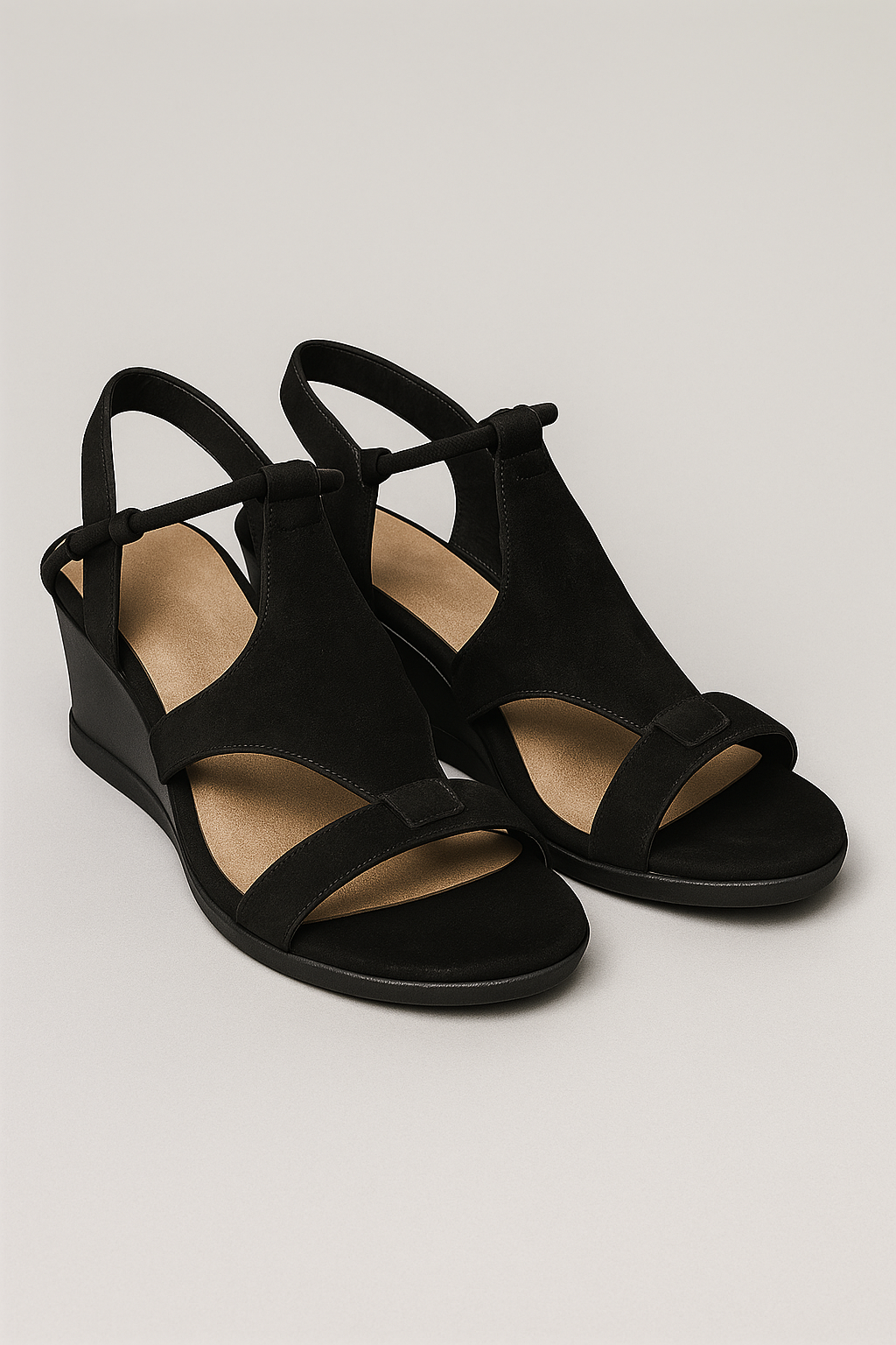 Feminine Sandaletten mit Keilabsatz in Schwarz