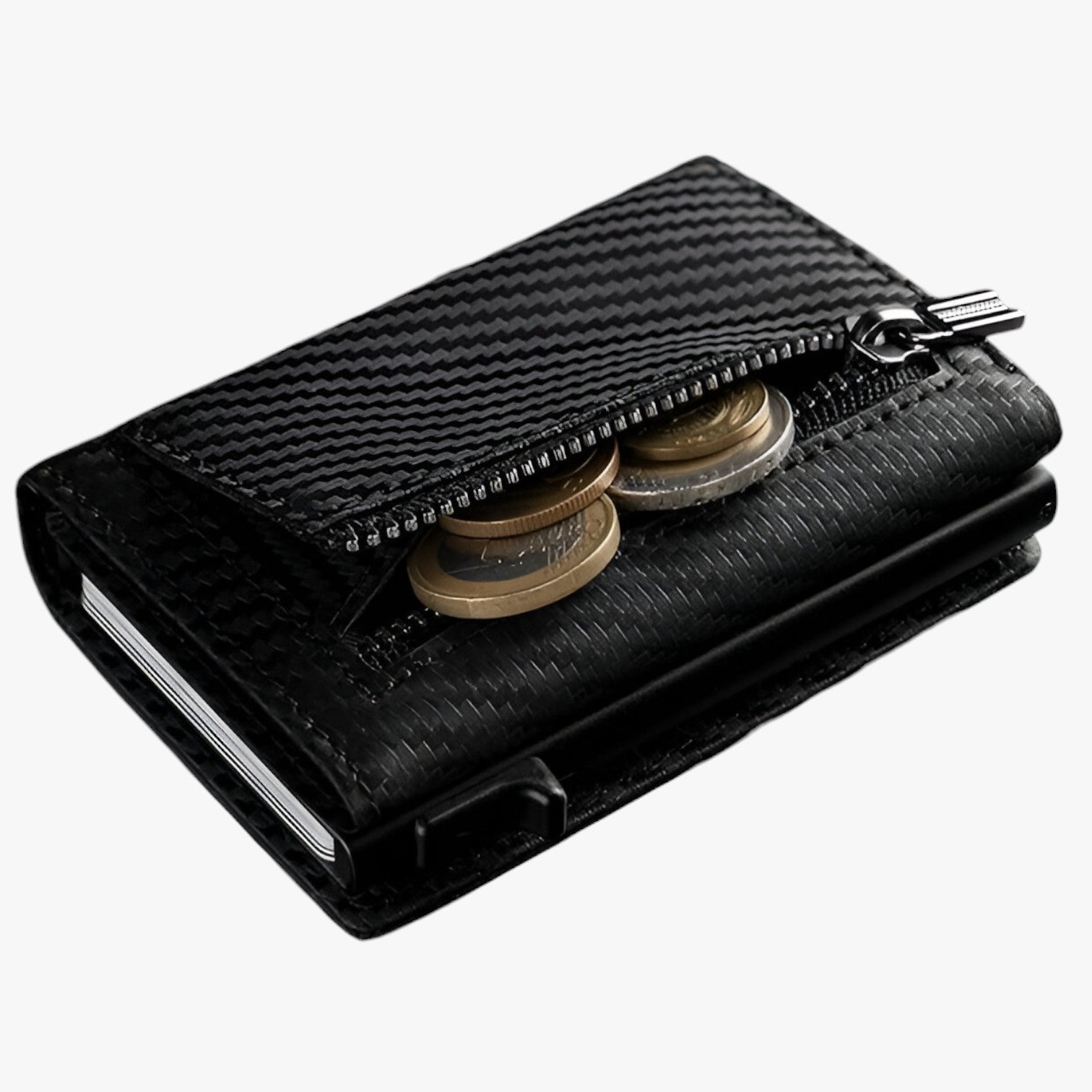 Platz für 8 Karten, Geldscheine und Münzen. Alles organisiert in einem schlanken Design.