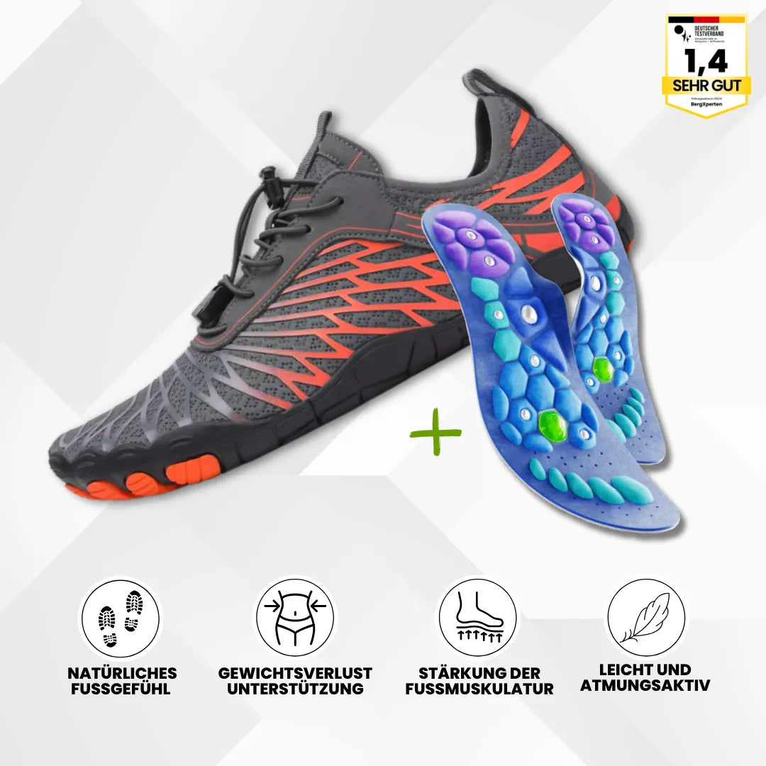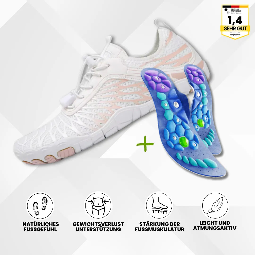 Gesundheitsexperten empfehlen die VitalSole Magnet-Akupressur-Einlegesohlen und die ergonomischen Florax-Barfußschuhe aufgrund ihrer nachweislichen Vorteile bei der Verbesserung der Durchblutung, der Linderung von Fußschmerzen und der Unterstützung der Gewichtsabnahme. Erleben Sie professionellen Komfort und Wohlbefinden bei jedem Schritt!