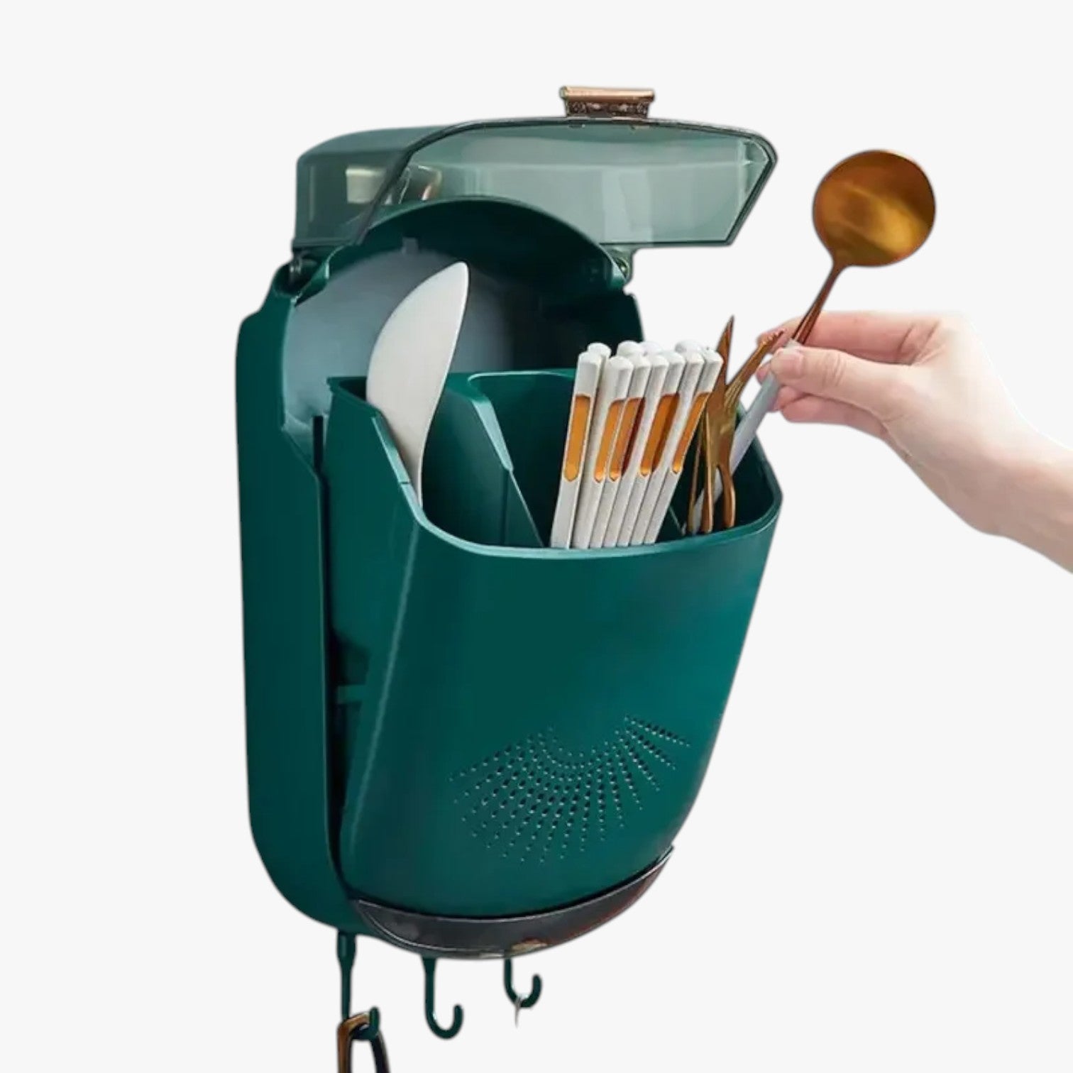 Haben Sie genug davon, überall Stäbchen und Löffel zu sehen? Mit Gianni bleibt alles sauber, trocken und an seinem Platz – direkt an der Wand.