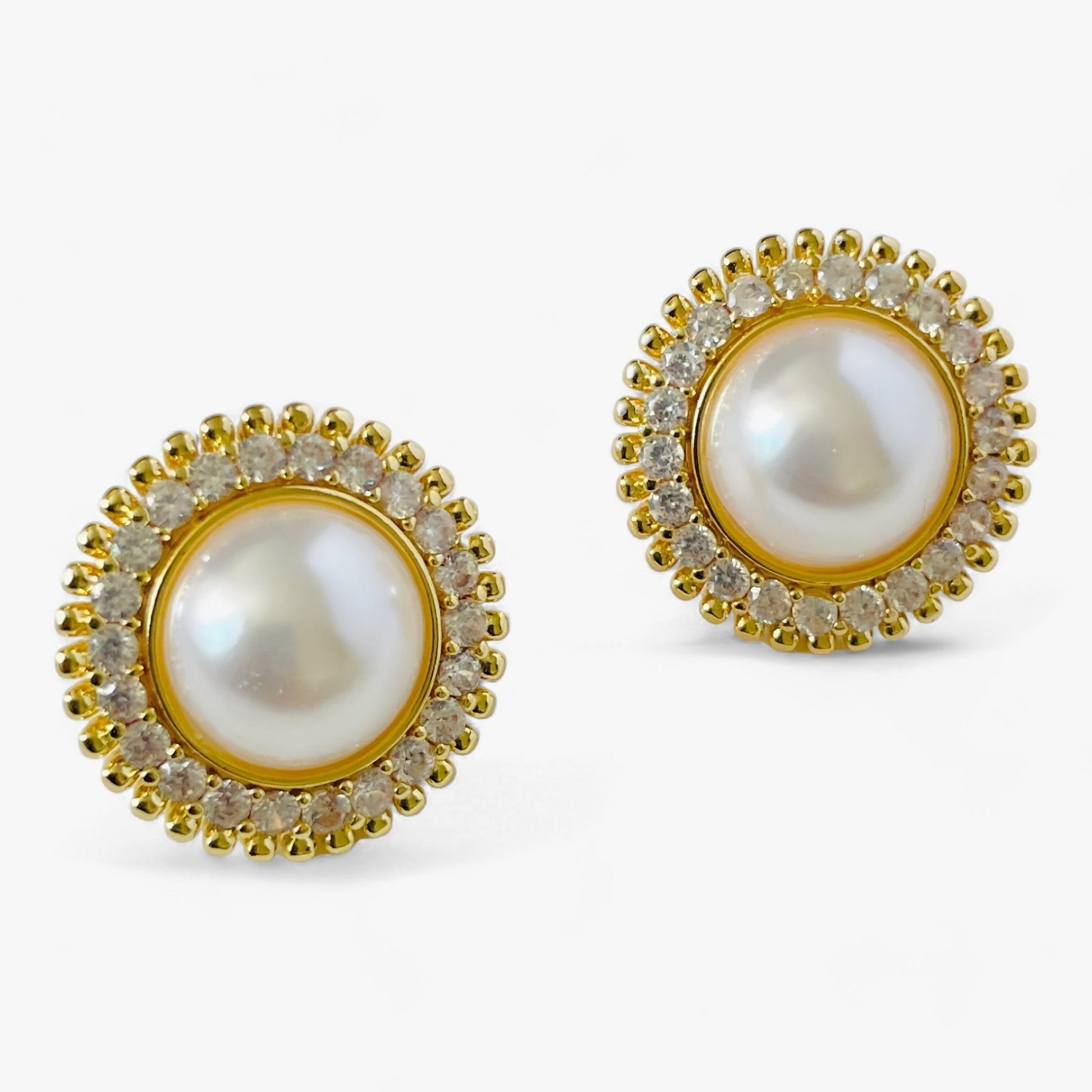Zeitlose Eleganz: Das klassische Design von Imitatperlen und Kristallen in einer goldenen Umgebung gewährleistet, dass diese Ohrringe nie aus der Mode kommen.