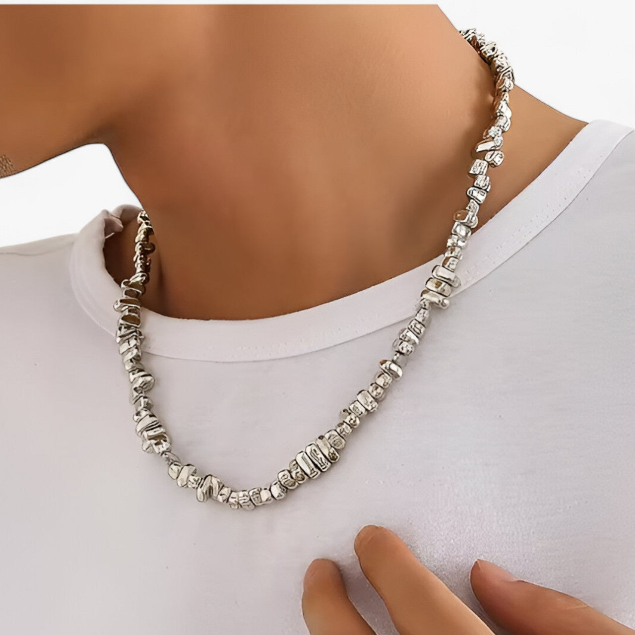 Entdecken Sie das Collier Ras du Cou mit Irrégulières-Perlen im CCB, ein modisches und gepflegtes Accessoire für Männer. Dadurch werden unregelmäßige Perlen in CCB an einer Kette präsentiert, wodurch ein einzigartiger und moderner Look entsteht. Diese Halskette eignet sich perfekt für ein kühnes Mode-Statement und ist ein ideales Geschenk für elegante Männer.