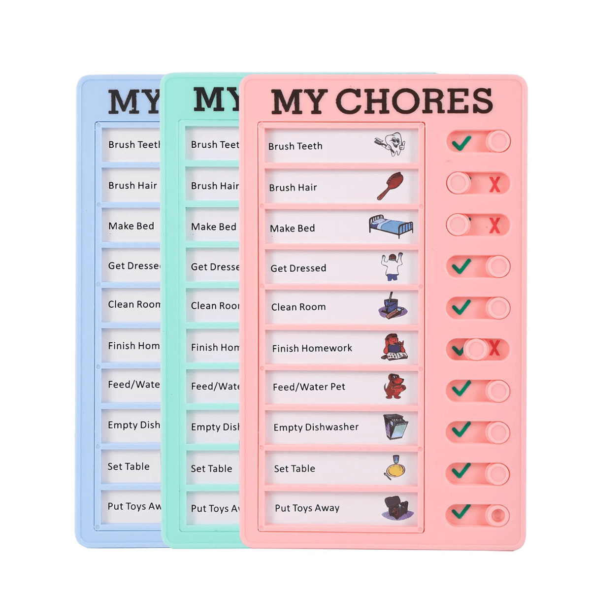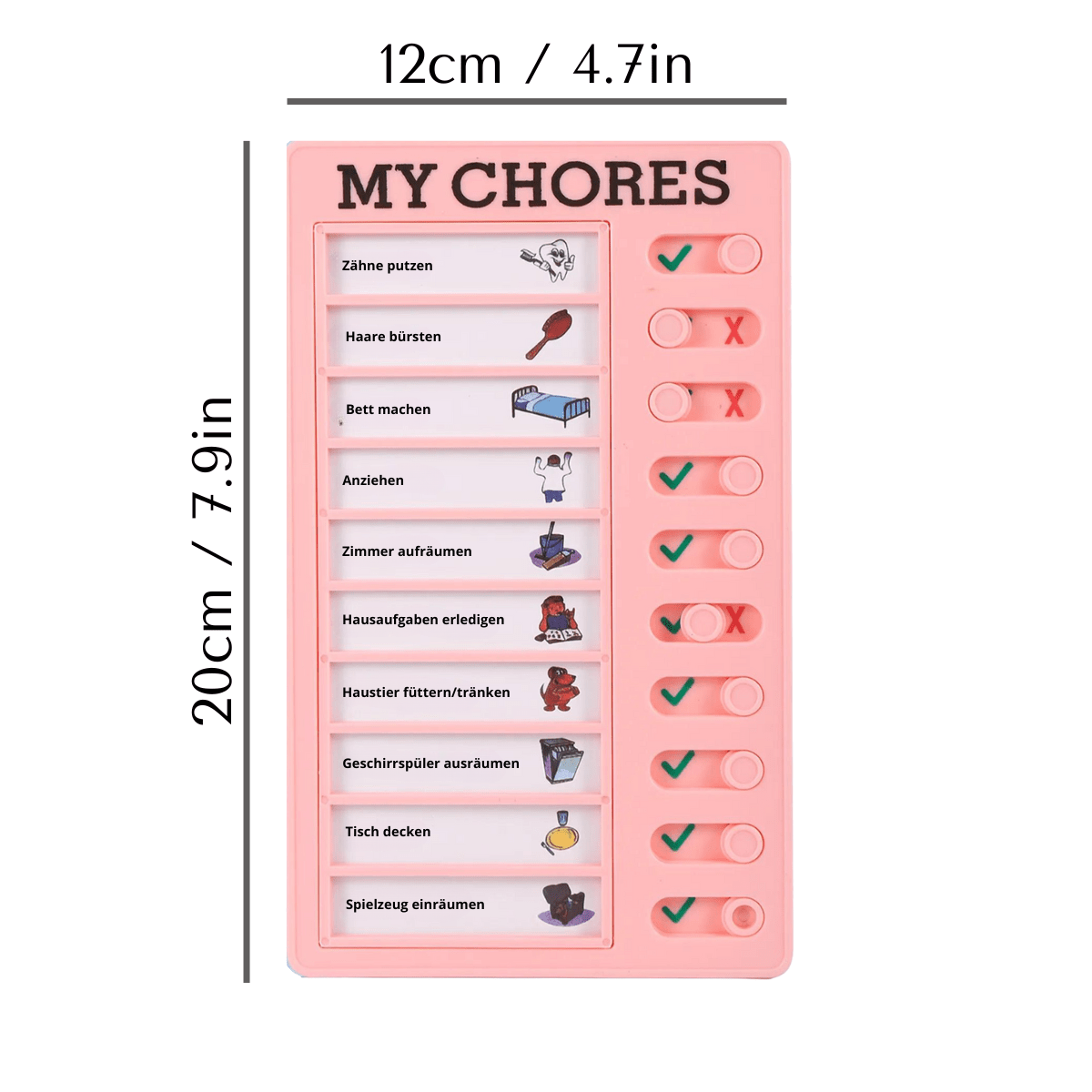 Helfen Sie Ihren Kindern, organisiert zu bleiben, und erleichtern Sie ihnen die täglichen Aufgaben mit der HappyTasks™ Daily Tasks Checklist! Diese personalisierte, interaktive Routine-Checkliste behält den Überblick über die Aufgaben, damit Sie und Ihre Familie immer auf dem richtigen Weg bleiben. Schieben Sie einfach einen Knopf, um ein rotes Kreuz verschwinden zu lassen, und erhalten Sie ein zufriedenstellendes grünes Häkchen für jede erledigte Aufgabe. Kein Ärgernis mehr für Eltern und Kinder - mit HappyTasks™ wissen Sie immer, welche Aufgaben erledigt werden müssen!