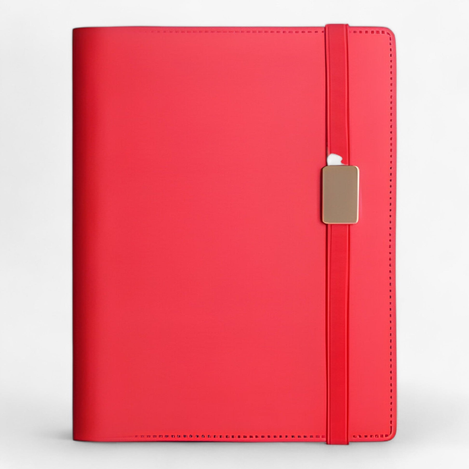 Halten Sie Ihre Dokumente sicher dank des Magnetverschlusses. Sie können Ihre Notizen und Projekte transportieren, ohne Angst zu haben, sie zu verlieren, und dabei eine elegante und ordentliche Erscheinung beibehalten.
