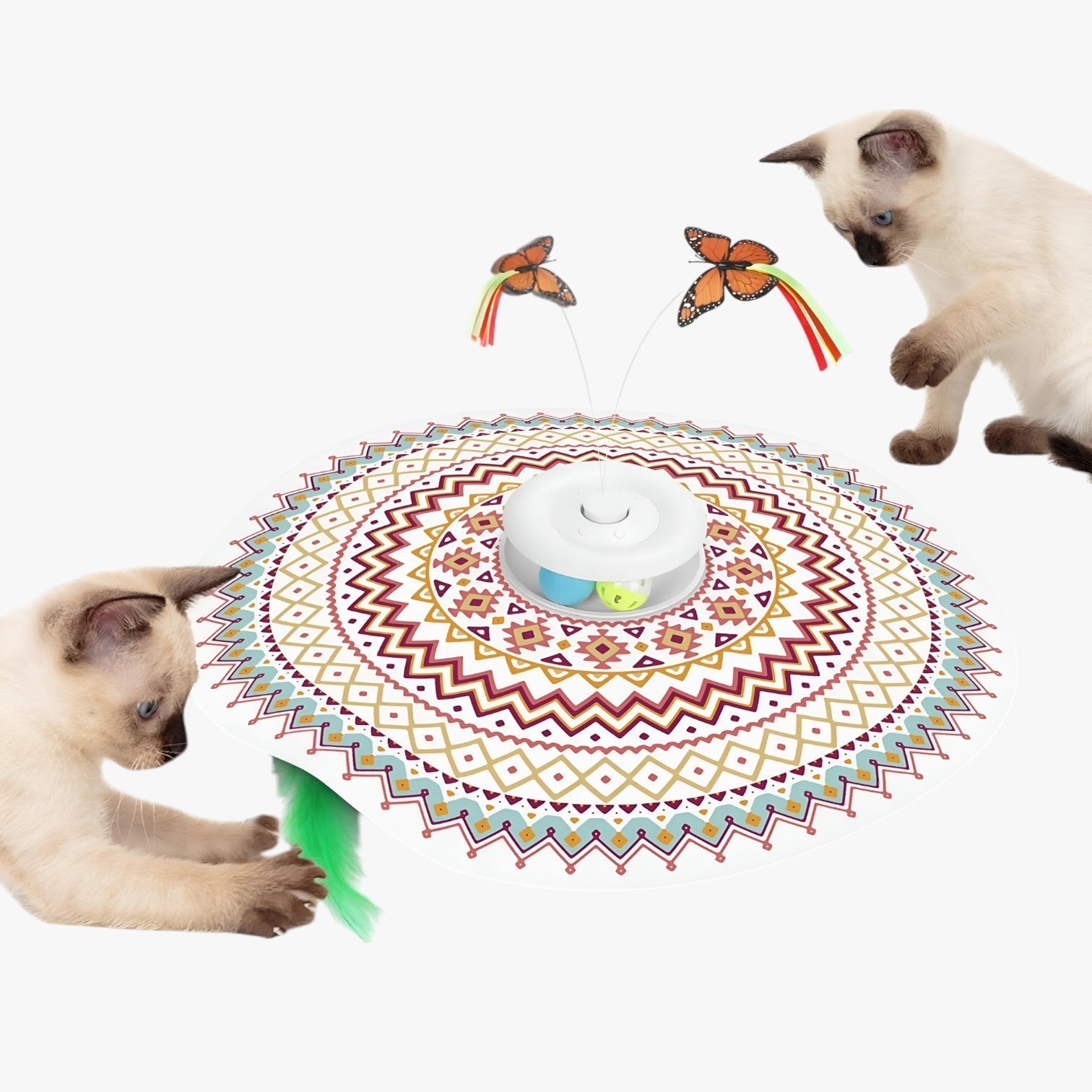 Jacob | Interaktives 4-in-1 Spiel für Katzen, wiederaufladbar, mit Schmetterling und Federn zum Jagen