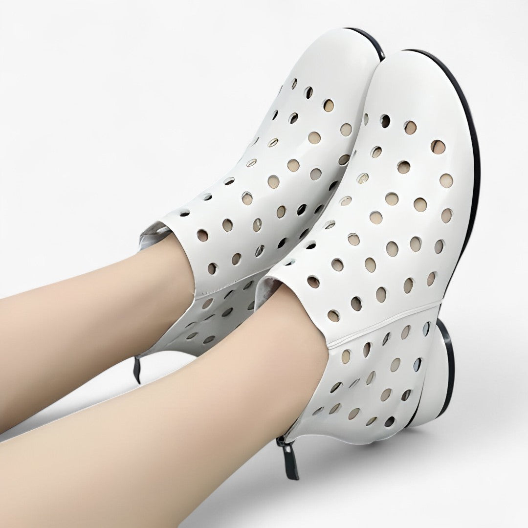 Jane | Atmungsaktive Leder-Stiefeletten mit Absatz und hinterem Reißverschluss