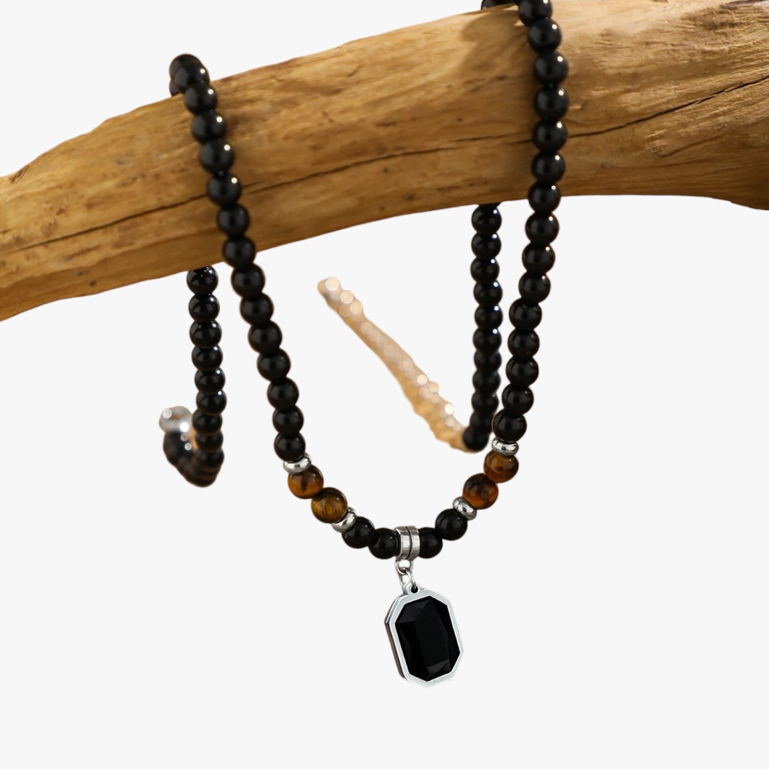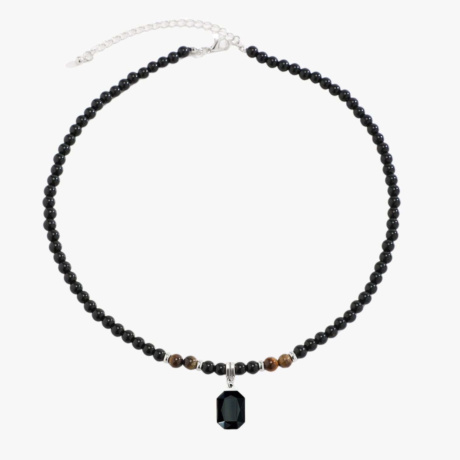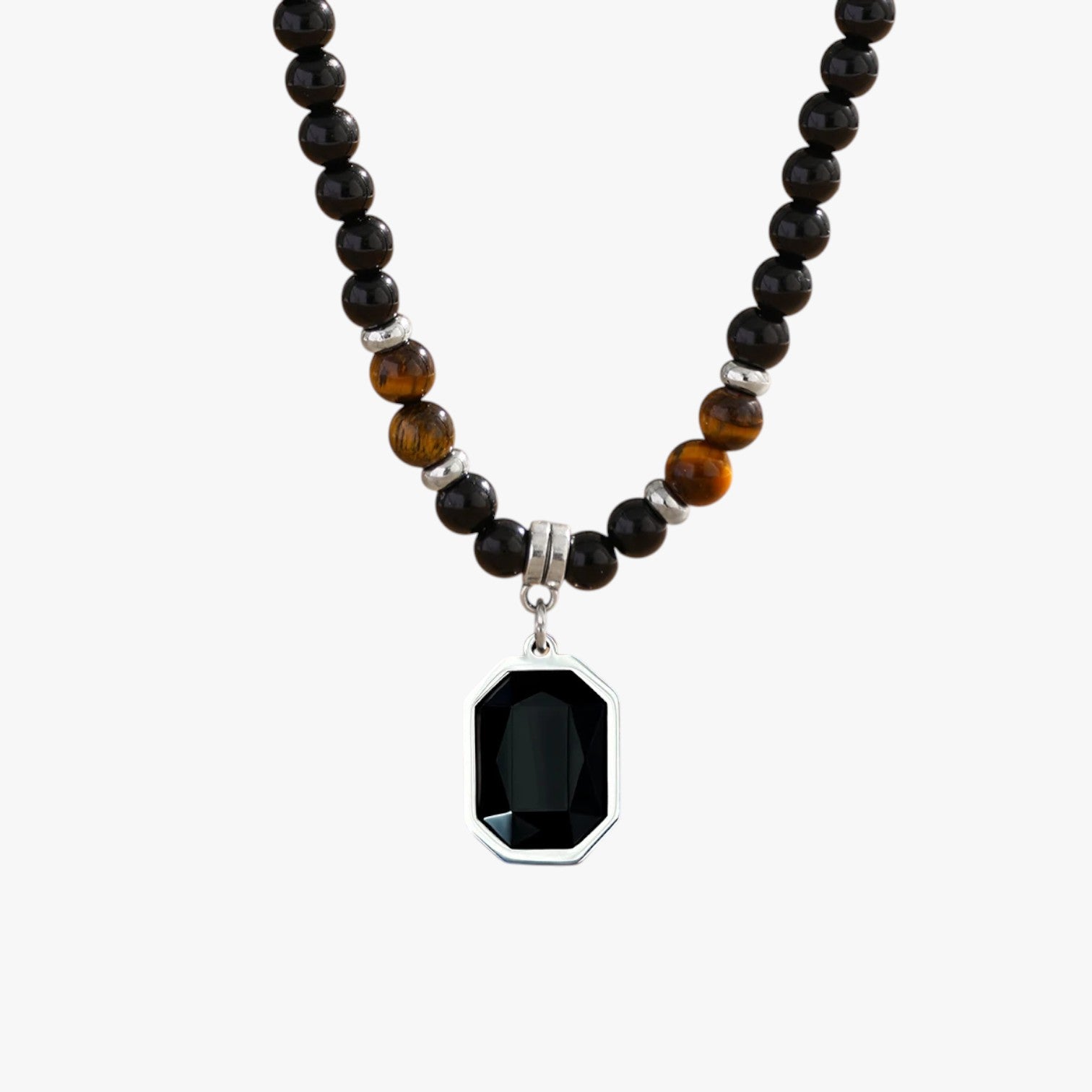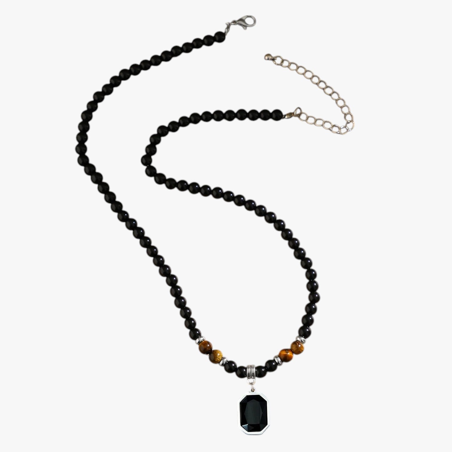Jaze | Wilde Kragenstil – Halskette mit schwarzen Perlen und quadratischem Anhänger für Männer