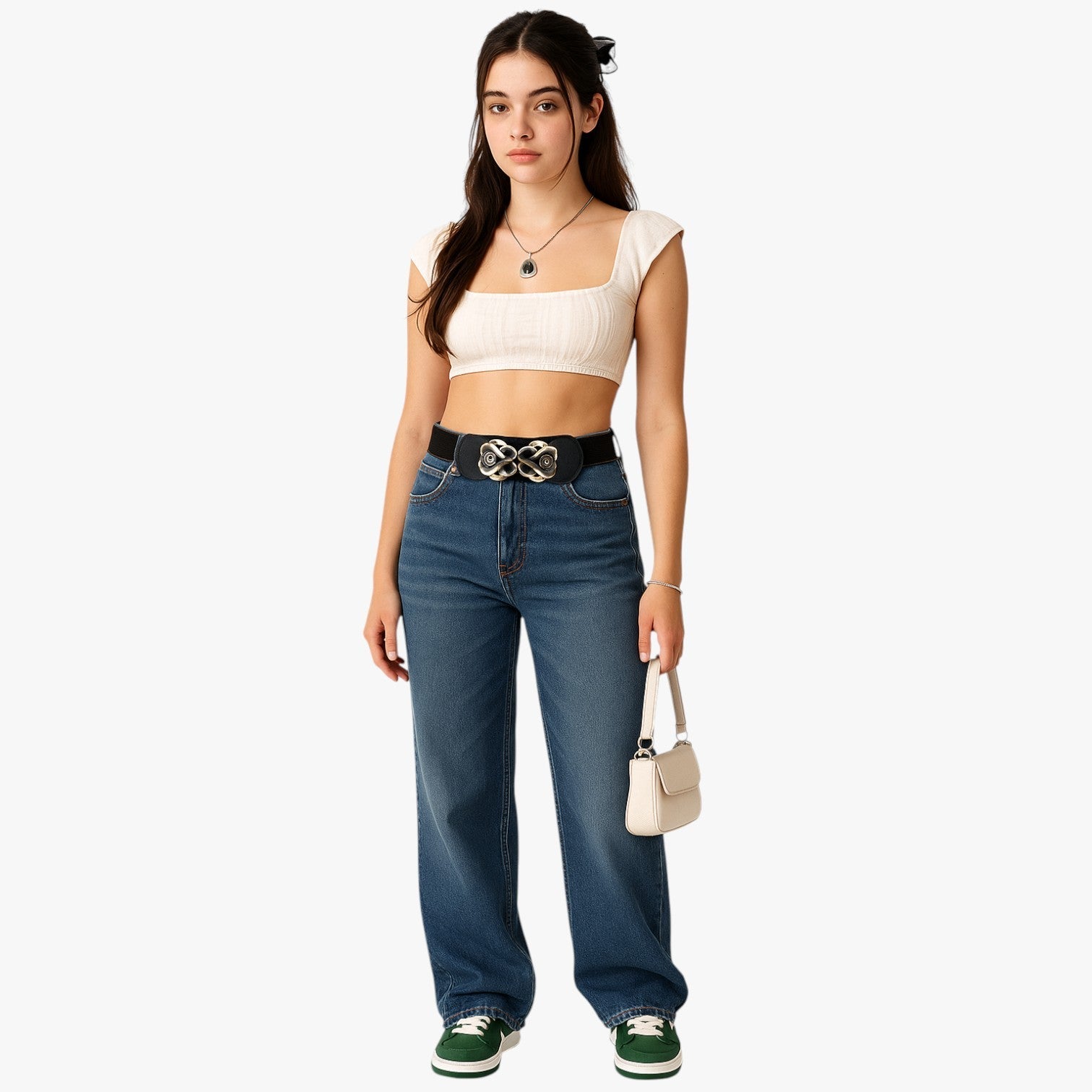 Die große Schnalle verleiht Charakter, ohne zu übertreiben, und lässt jedes Outfit im Handumdrehen raffinierter wirken.