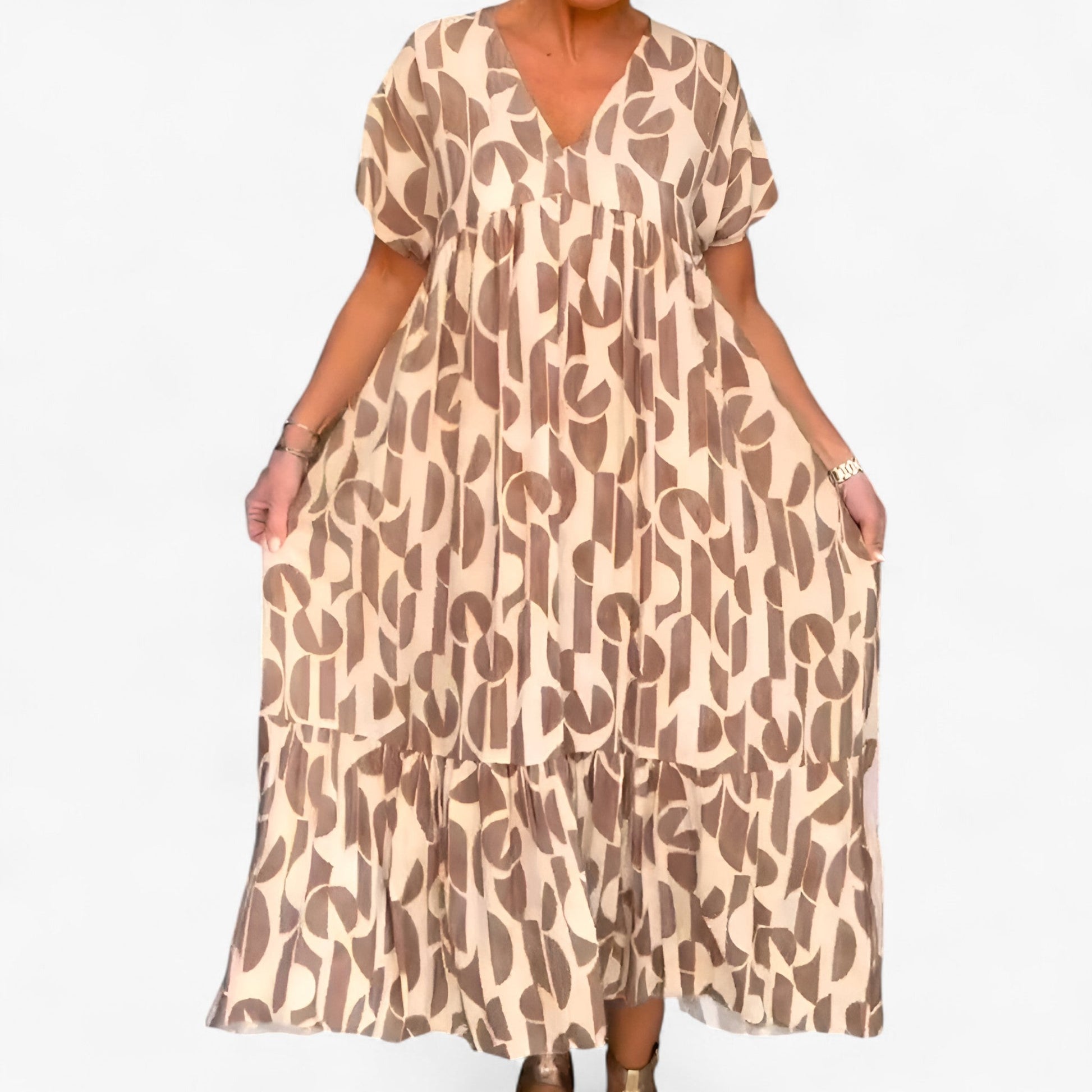 Das Felicia-Kleid vereint Eleganz und Komfort und ist damit die perfekte Wahl für warme Sommertage. Der luftige Schnitt und der dezente V-Ausschnitt sorgen dafür, dass du stilvoll aussiehst und dich gleichzeitig den ganzen Tag wohlfühlst.