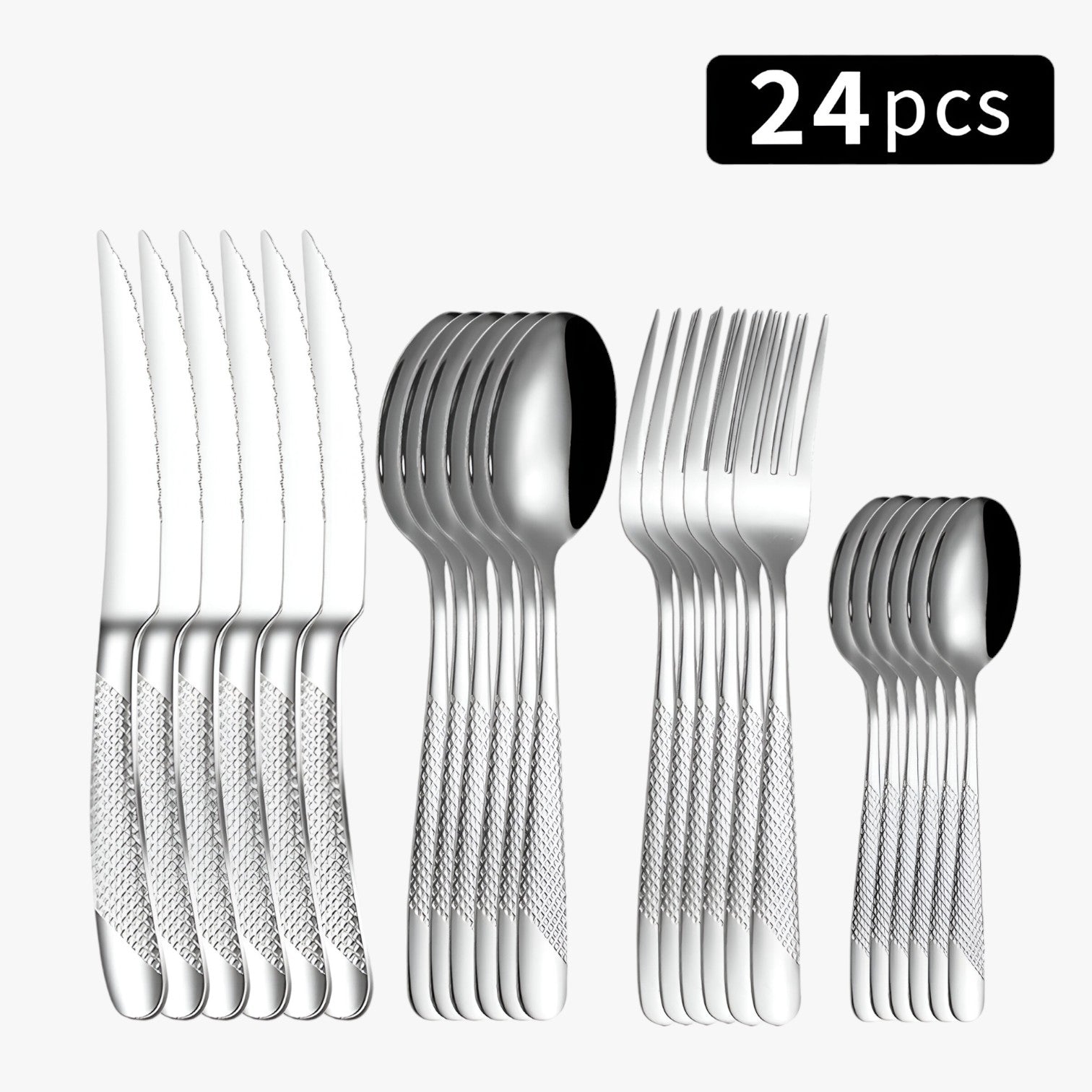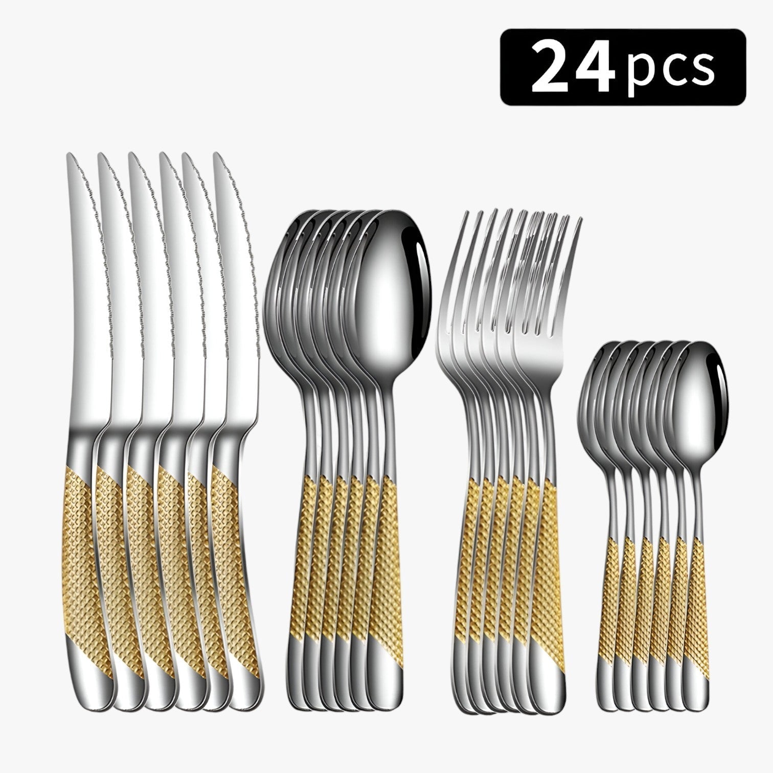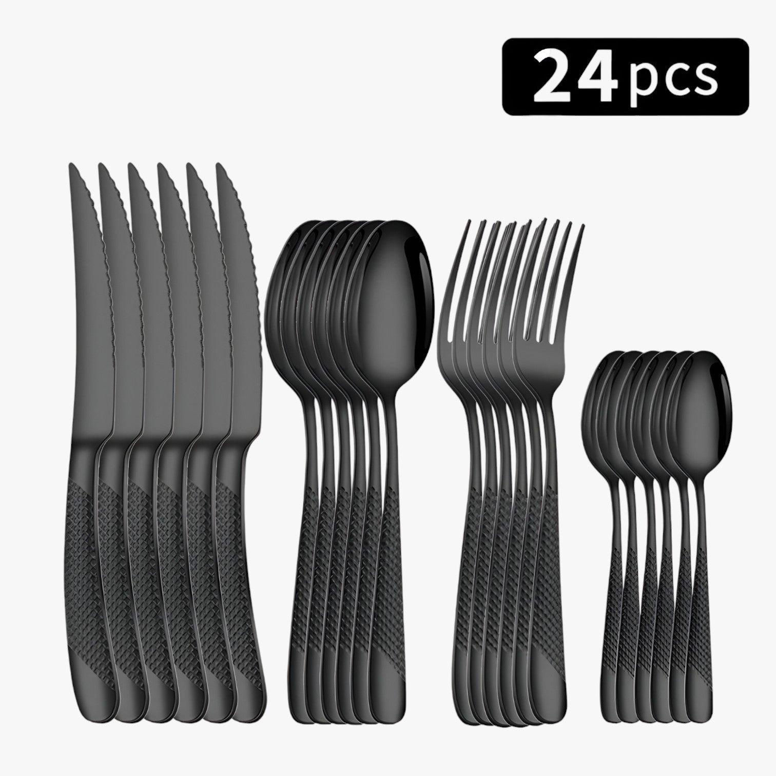 Enthält Gabeln, Messer, Löffel und Dessertlöffel – ein komplettes Set für jeden Anlass.