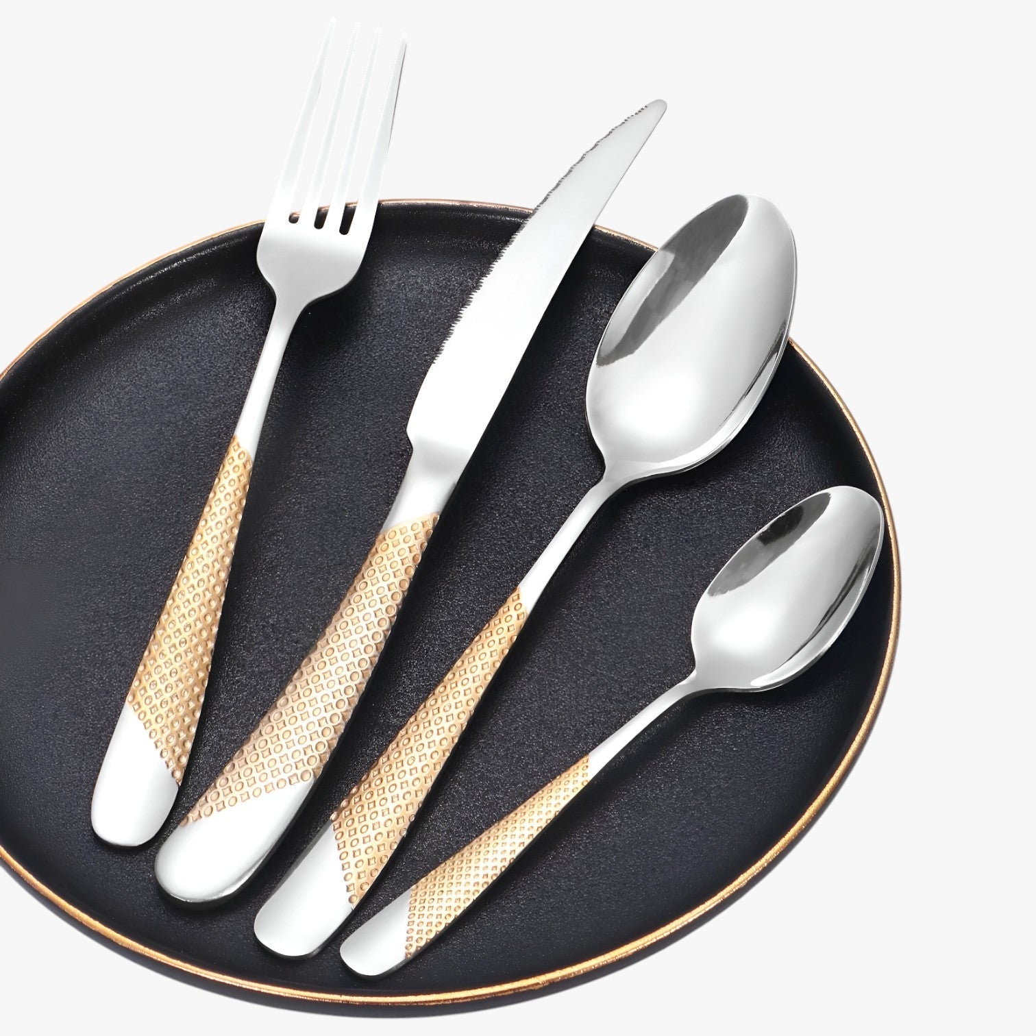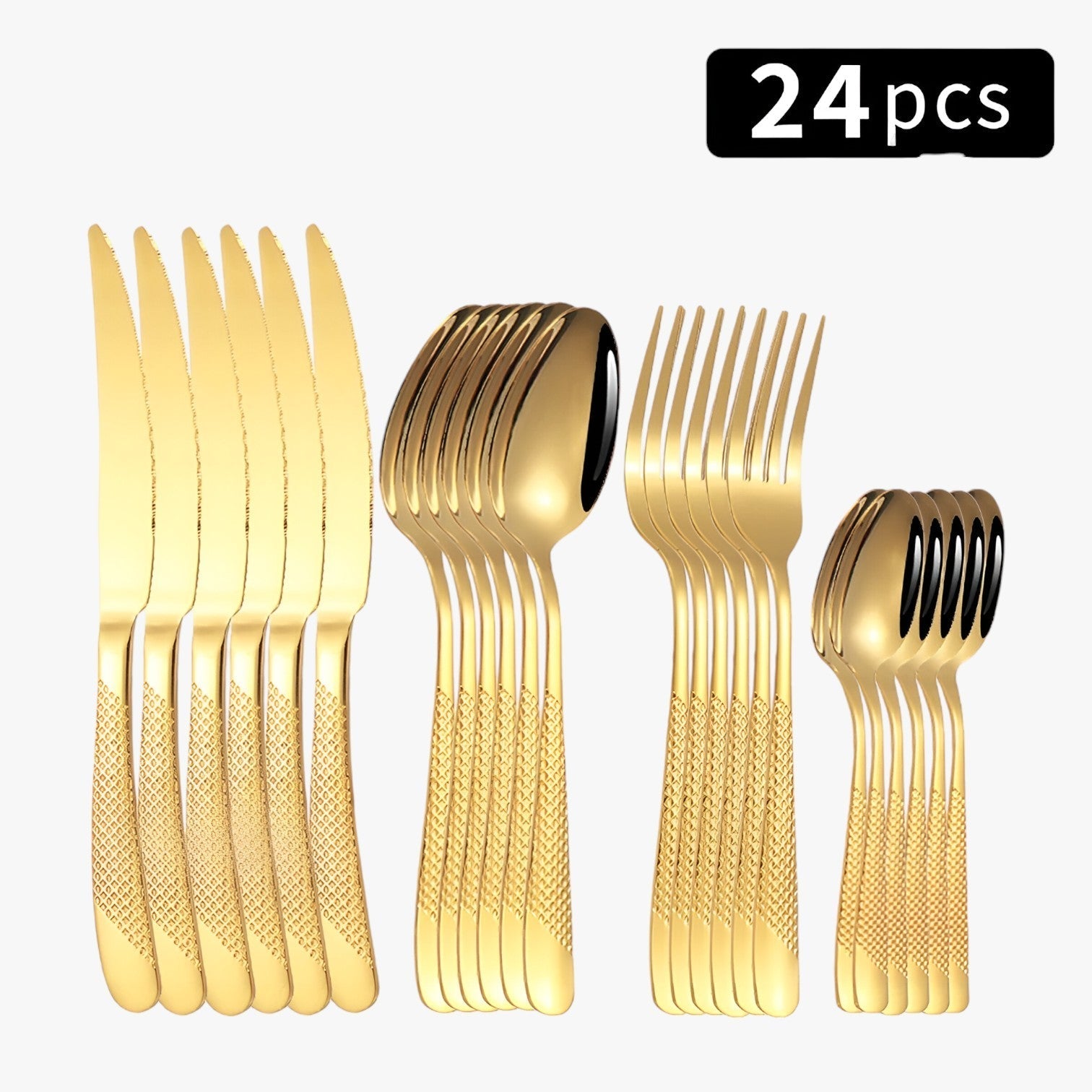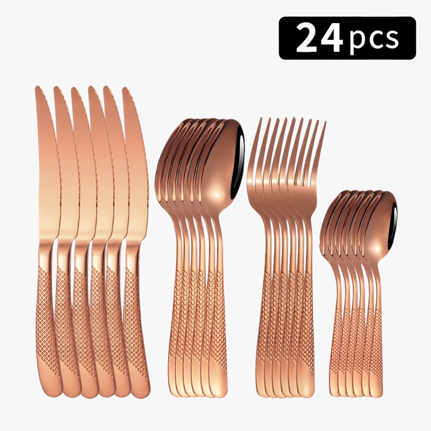 Enthält Gabeln, Messer, Löffel und Dessertlöffel – ein komplettes Set für jeden Anlass.