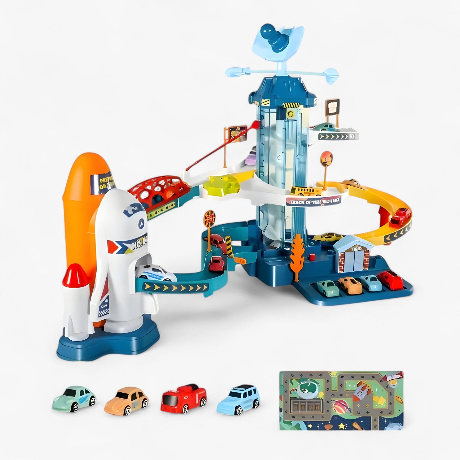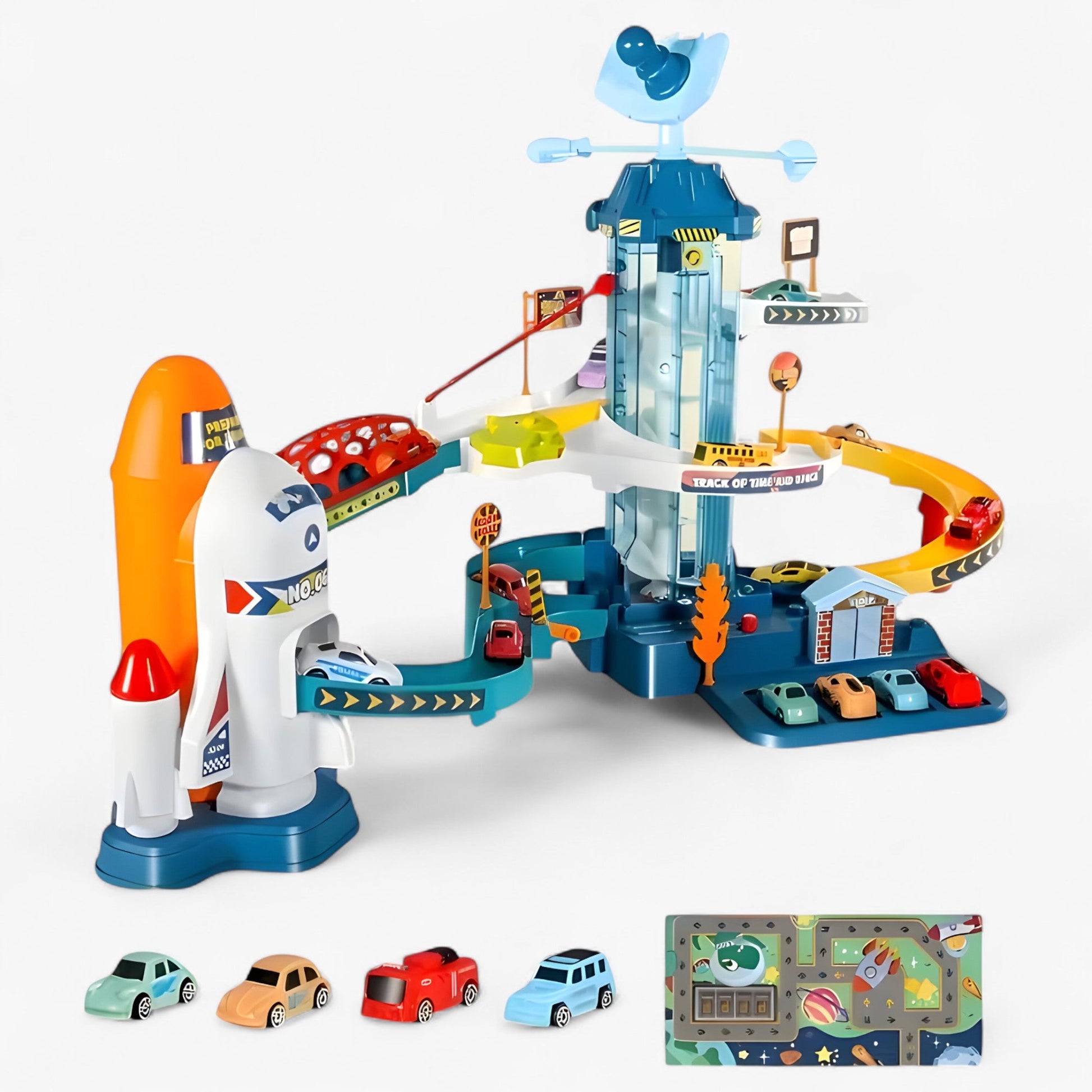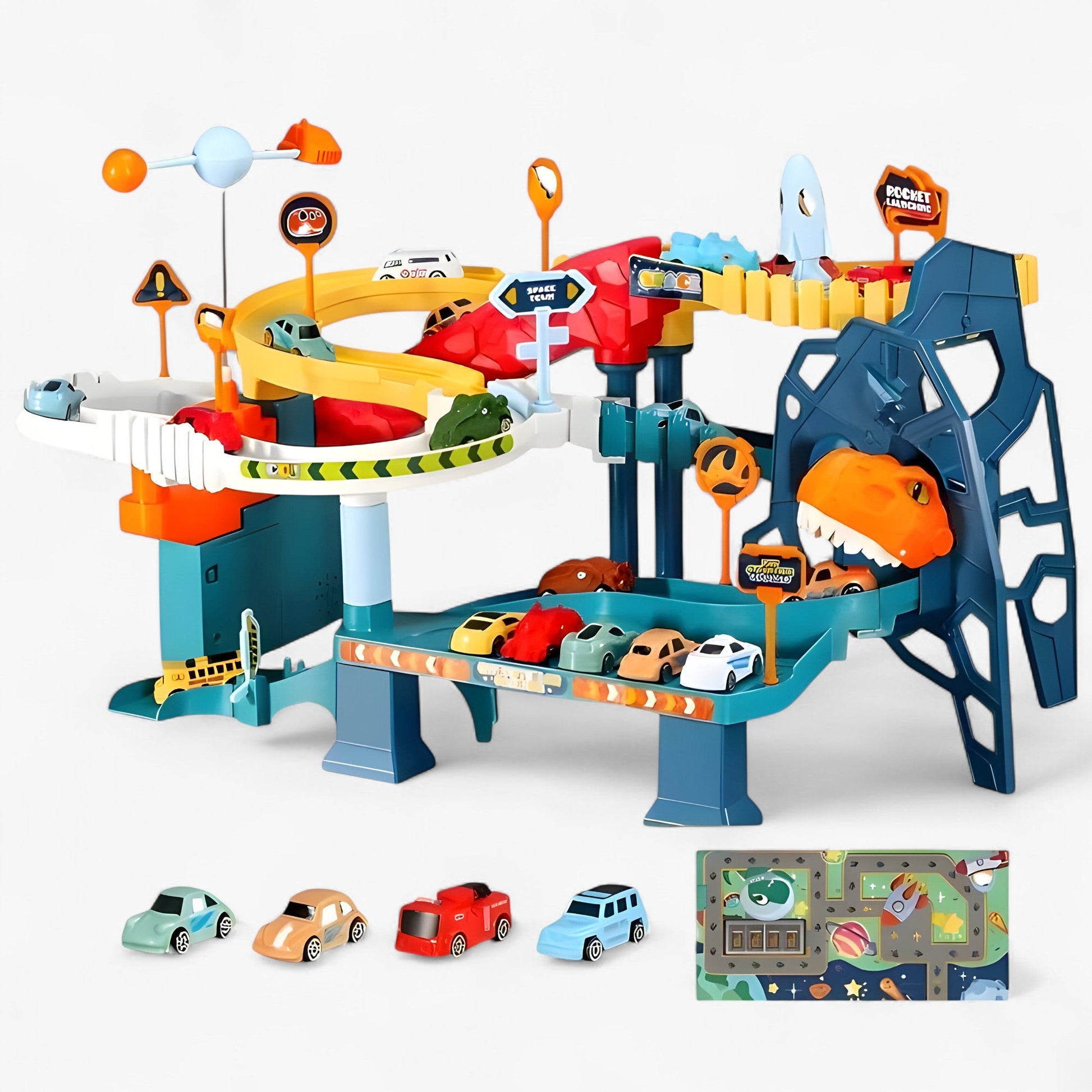 Die Bahn besticht durch ein einzigartiges Weltraumdesign, das die Fantasie der Kinder anregt. Denken Sie an Raketenstarts und intergalaktische Wettfahrten—perfekt für stundenlanges Spielen.