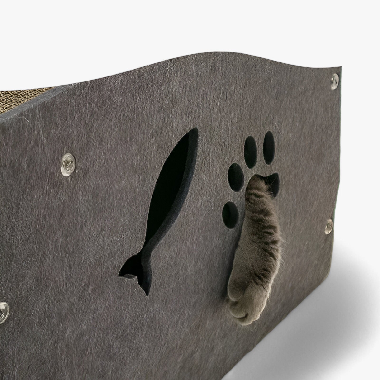 Entdecken Sie Felix, die perfekte Kombination aus einem komfortablen Ruheplatz und einem unterhaltsamen Kratzbereich für Ihre Katze. Diese Kartonbox ist darauf ausgelegt, die natürlichen Bedürfnisse Ihrer Katze zu erfüllen und bietet mehrere Vorteile: