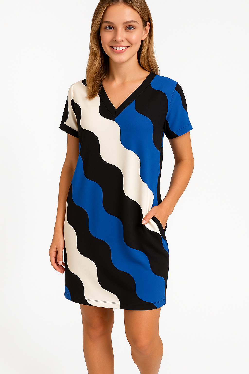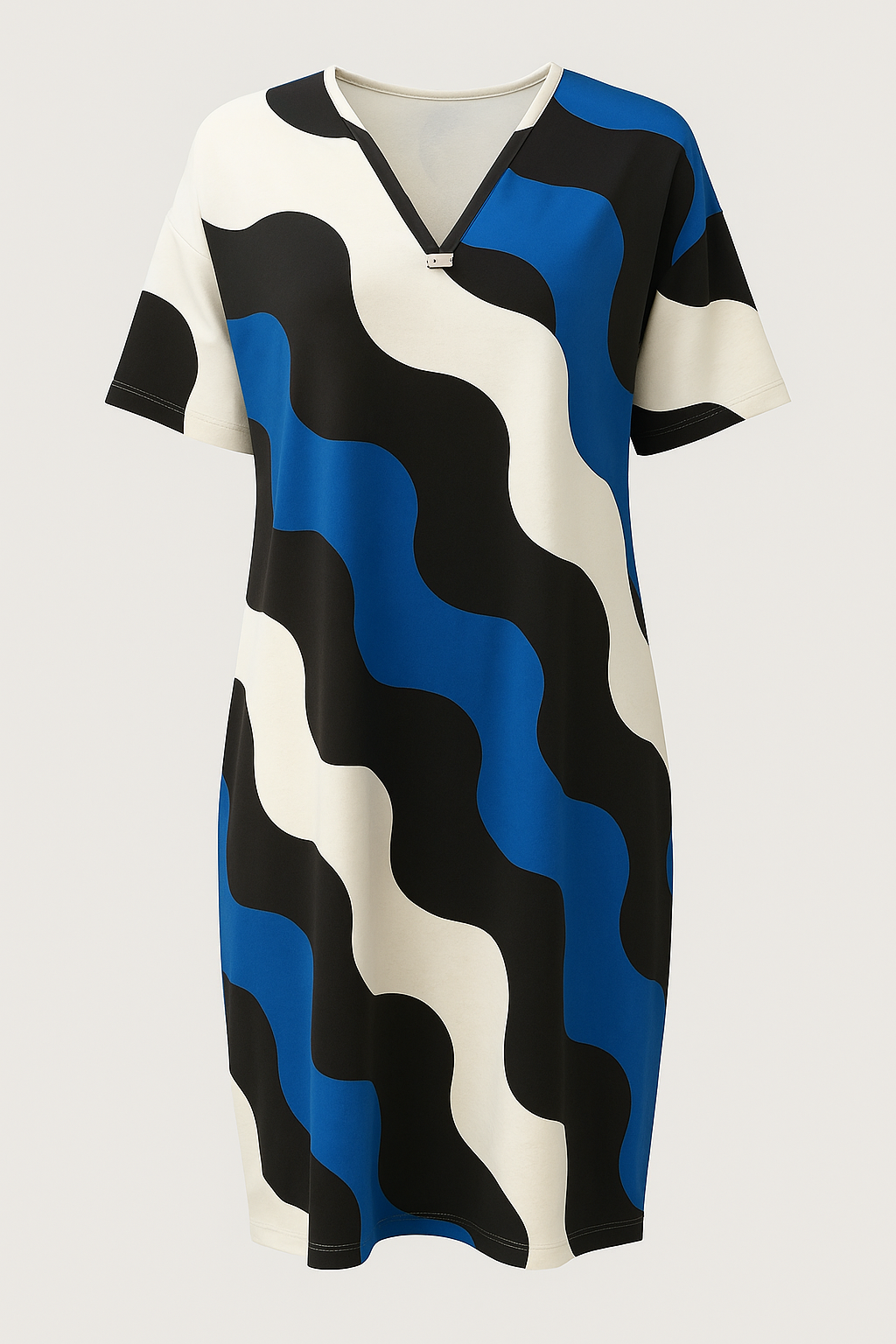 Dieses elegante Damenkleid mit V-Ausschnitt wurde entworfen, um Ihre Figur zu betonen und Ihnen ein Gefühl von Feminität zu verleihen. Ideal für verschiedene Anlässe, ist dieses Kleid ein unverzichtbares Teil Ihrer Garderobe.