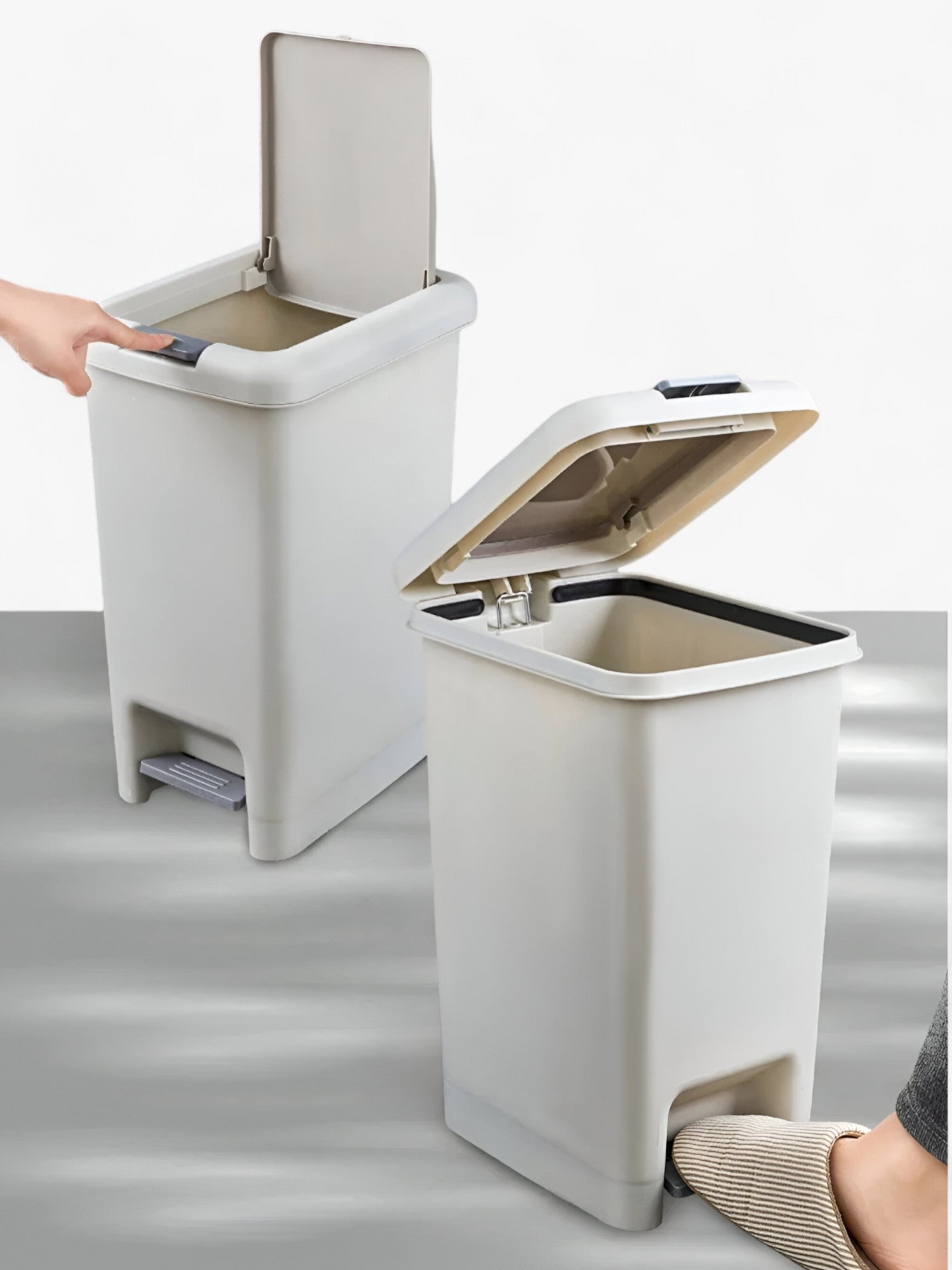 - Hygienisch und praktisch: Das Fußpedal ermöglicht es, den Mülleimer ohne Berührung zu öffnen, was die Hygiene erhöht und den Bedienkomfort verbessert.