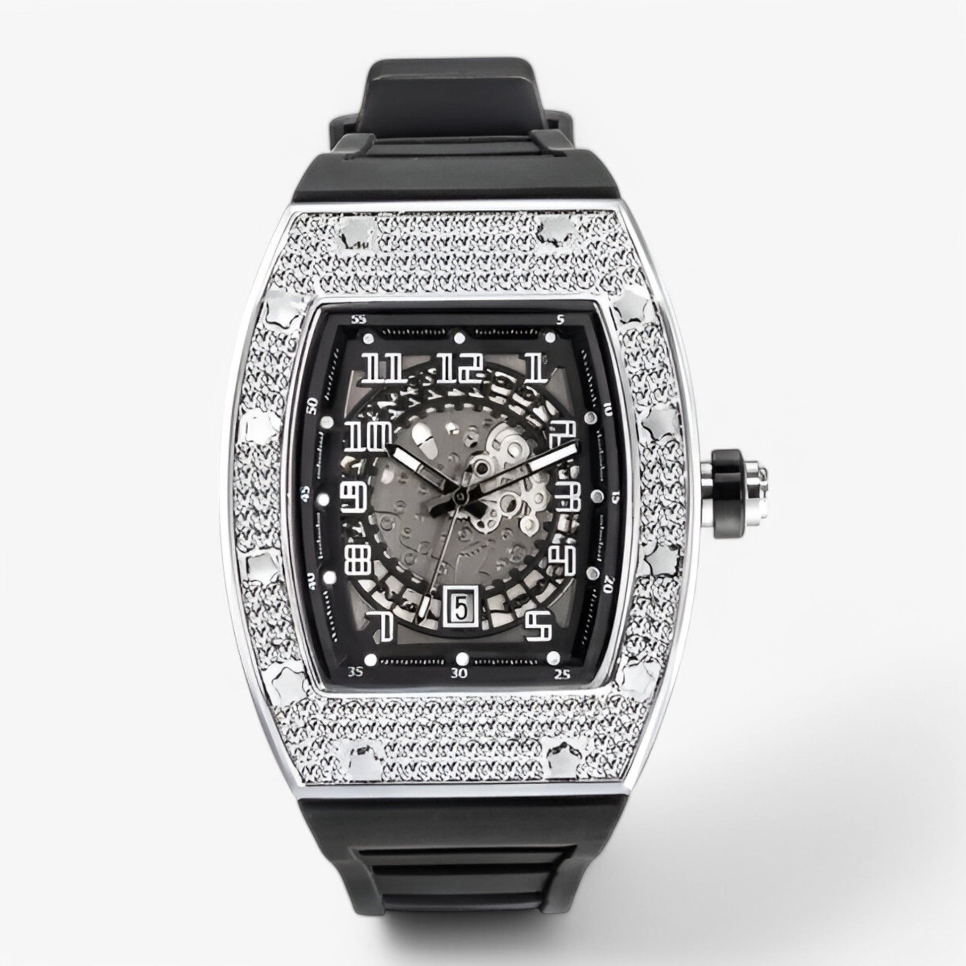Die geschwungene Tonneau-Form verleiht dieser Uhr einen einzigartigen Look – inspiriert von klassischer Uhrmacherkunst, neu interpretiert für den modernen Mann. Das schlanke Gehäuse liegt perfekt am Handgelenk und zieht bewundernde Blicke an.