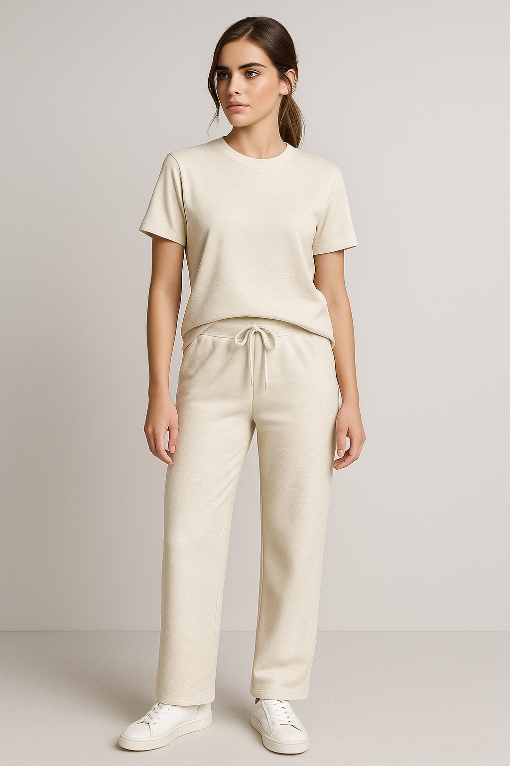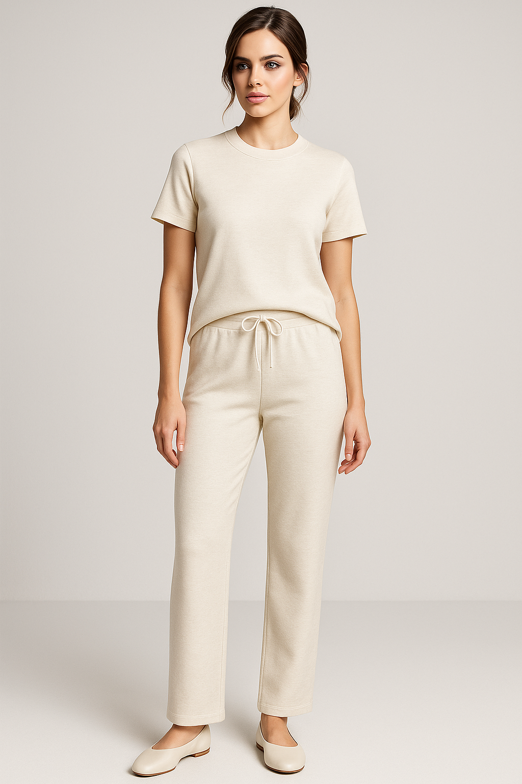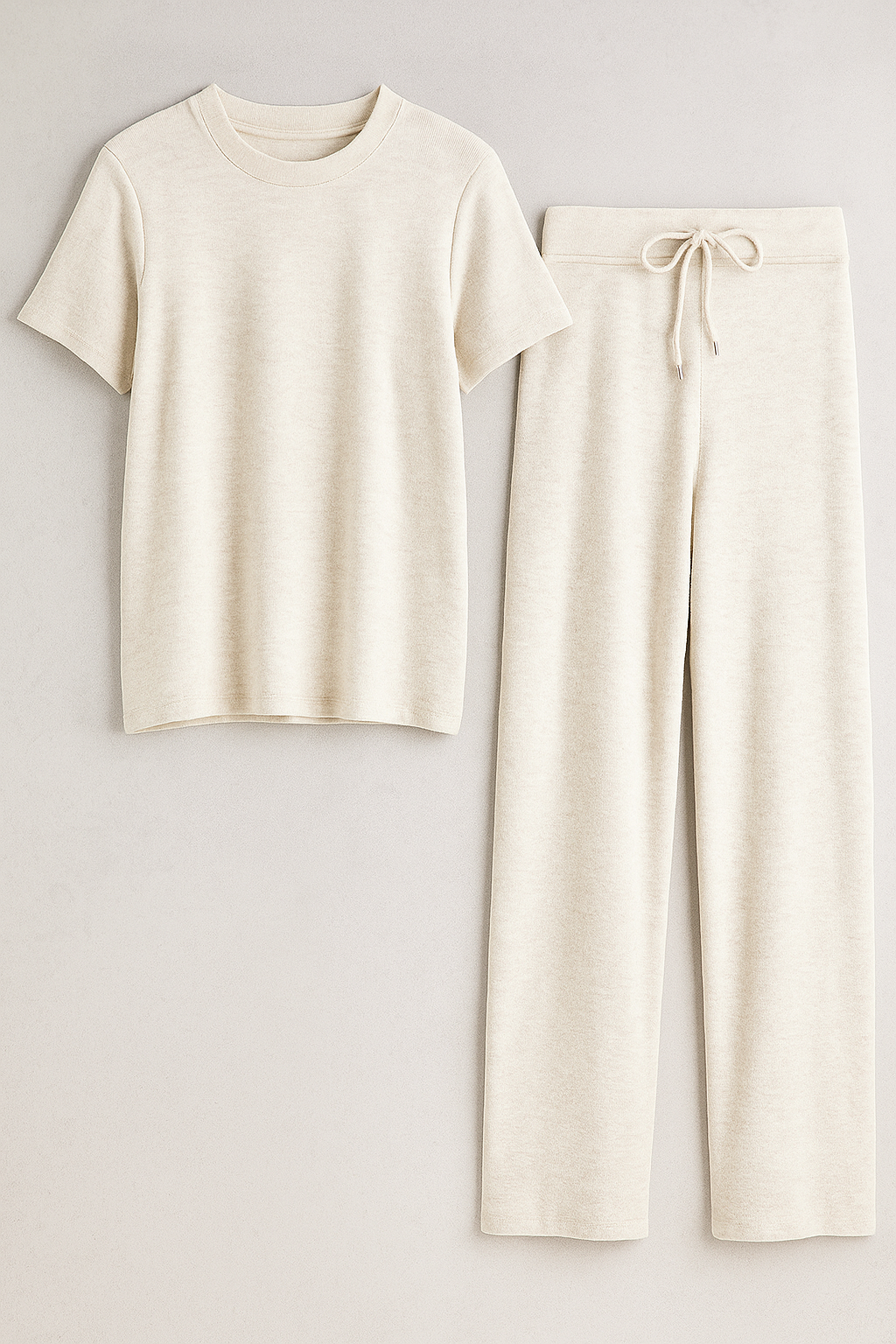 Ein Hauch von entspannter Eleganz – das Lounge-Set Leonie vereint Komfort und Stil für gemütliche Stunden zu Hause oder lässige Alltagslooks. Der lockere Schnitt, das weiche Material und die dezenten Details machen es zum idealen Begleiter für entspannte Tage.